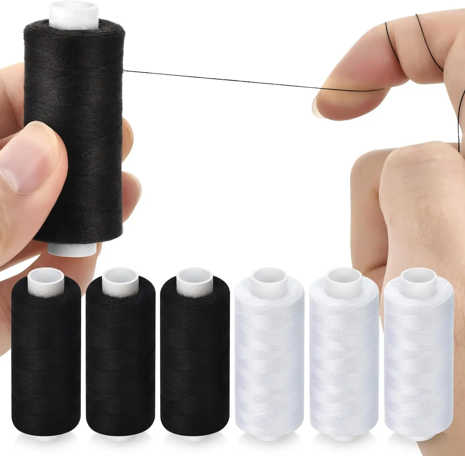 ·3 spools of black and white thread, each 400 yards, perfect for daily sewing and DIY. Includes a hand sewing needle and needle threader for a smoother experience. Ideal for home repairs and creative projects.