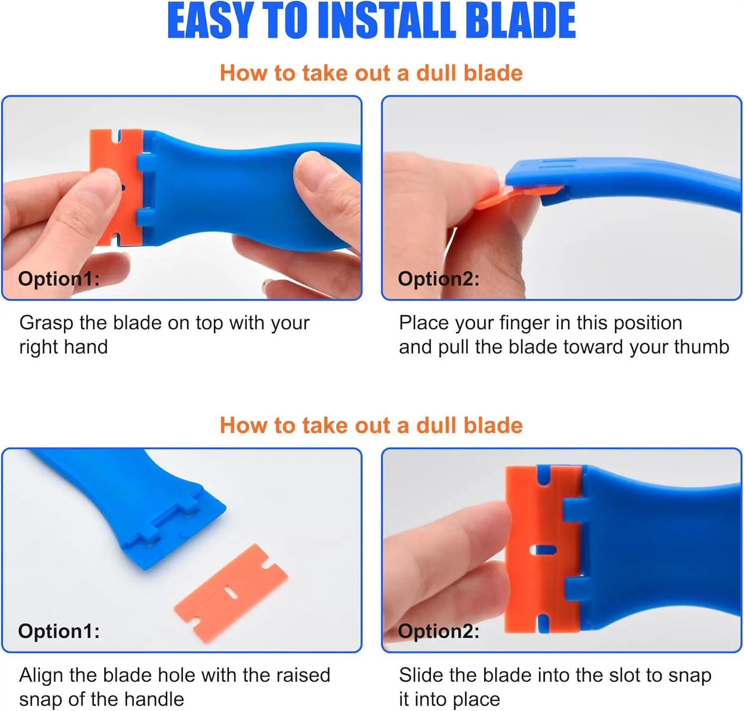 ·Package Includes: 4 plastic scrapers and 120 replacement blades.