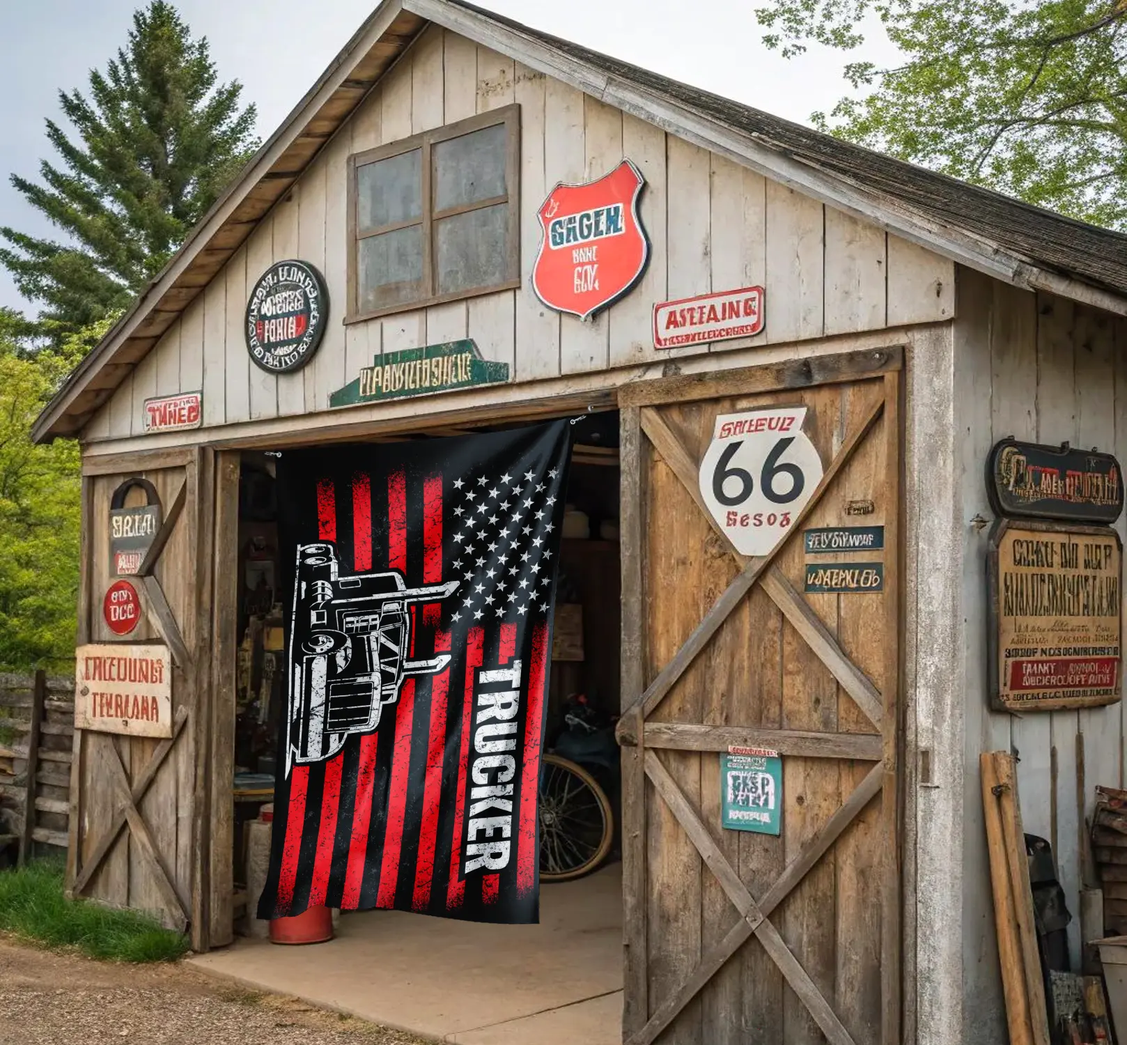 Trucker American Flag Design Outdoor Yard Garden Flag Double Sided Weather Resistant