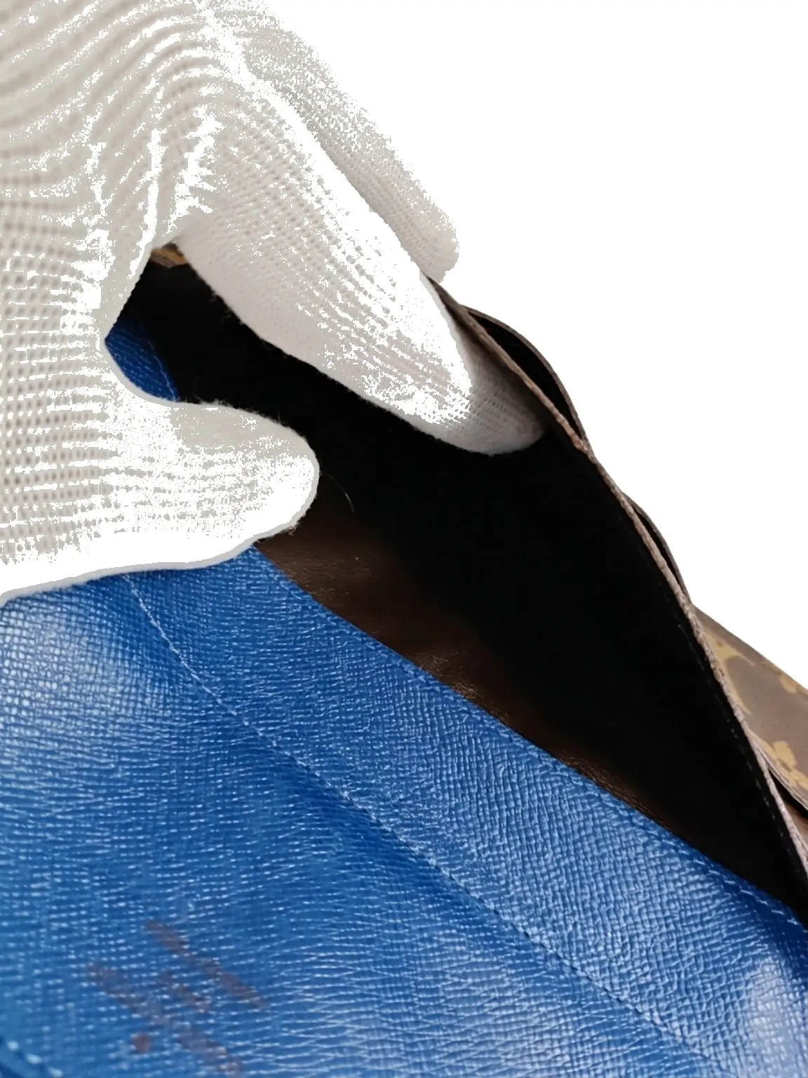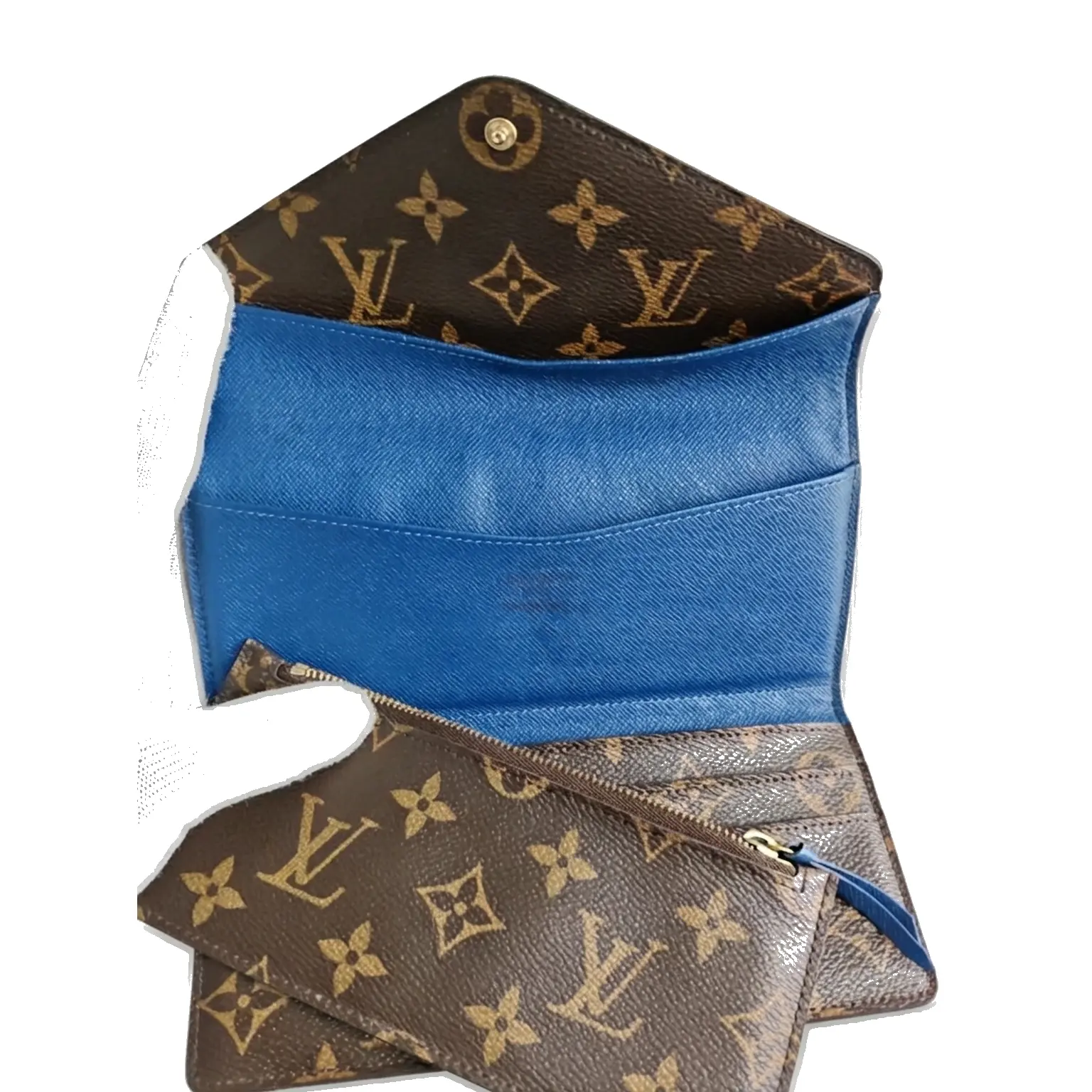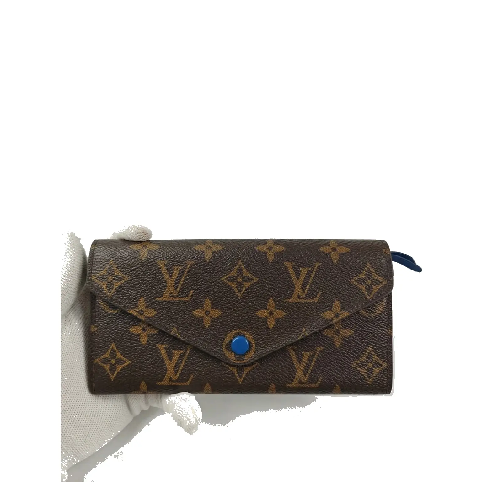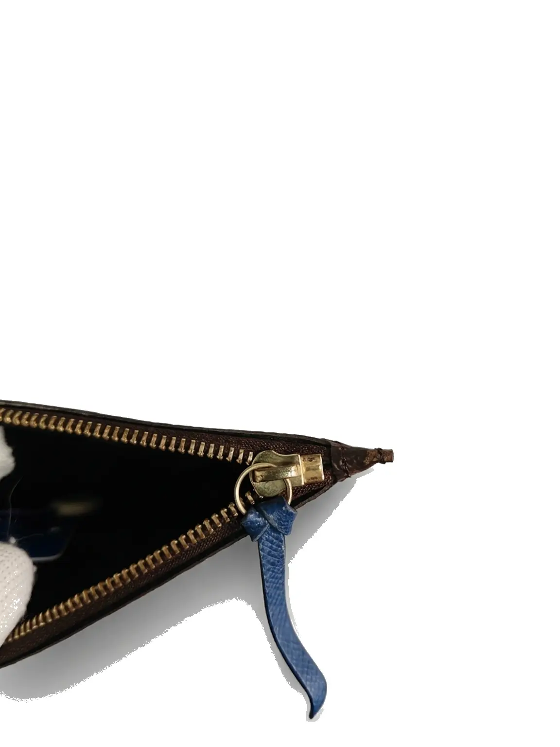 Pre-owned Louis Vuitton Monogram coated canvas with colored leather trim Mini Bags Pochette Kirigami Brown monogram with blue leather tab Very Good S014260326108