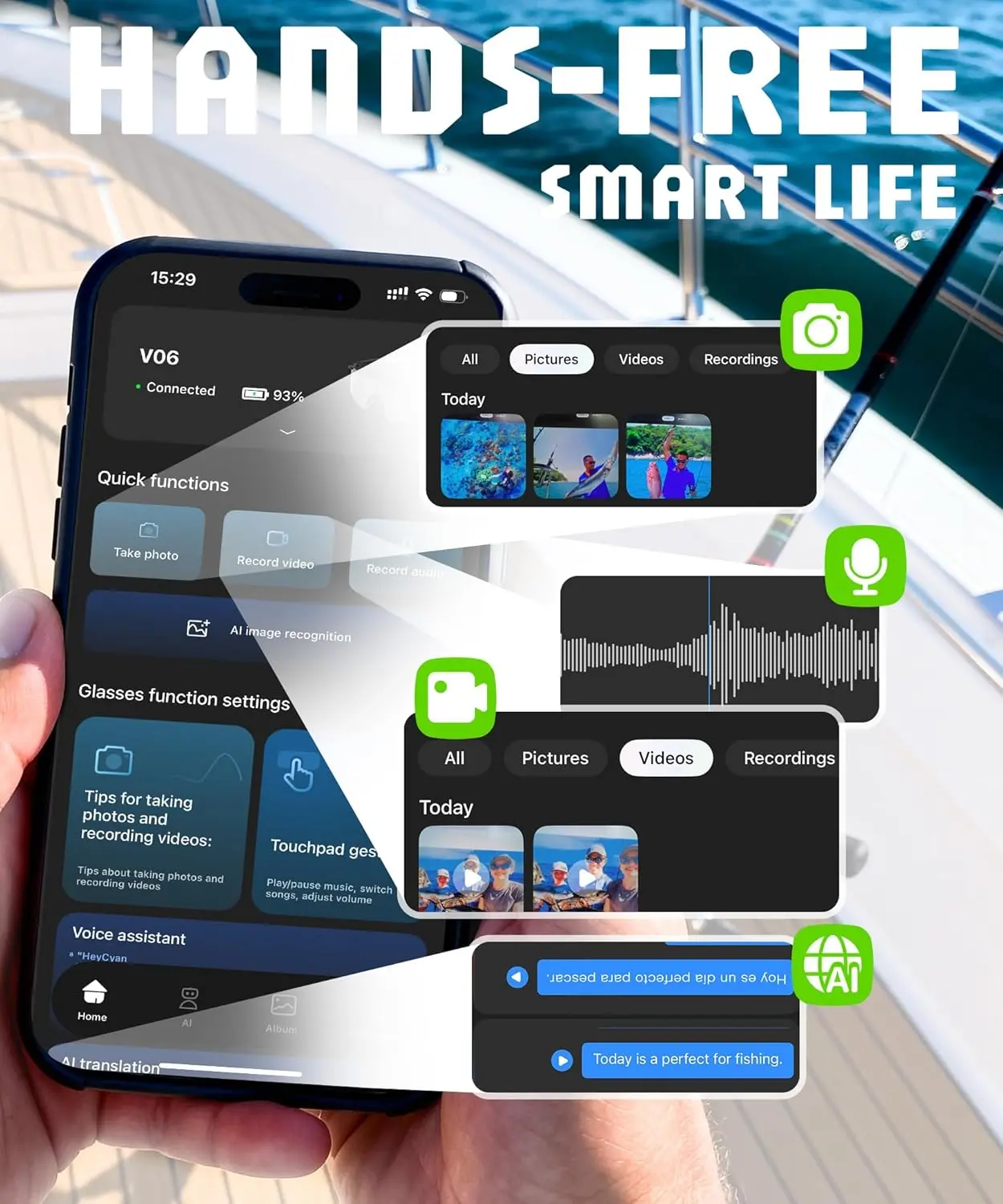 Forget bulky action cameras. Our 4K video recording glasses provide a seamless first-person view (POV) of your most exciting moments. With built-in Electronic Image Stabilization (EIS), your footage remains smooth and professional, even while mountain biking or running.