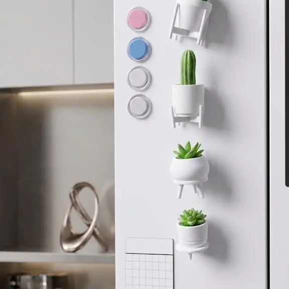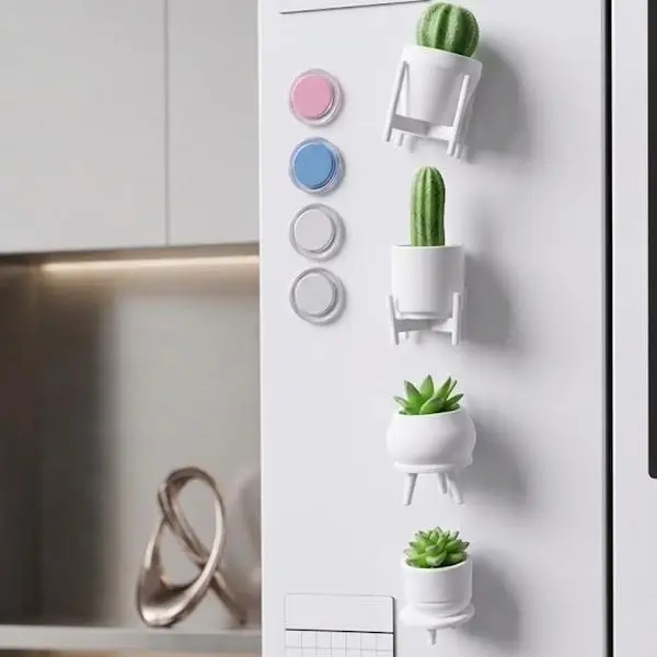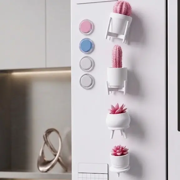 Our succulent and cactus magnets—featuring pastel pink and pure white tones—are the perfect accessory for those who love delicate details. Designed to transform your fridge or whiteboard into a stylish focal point.
