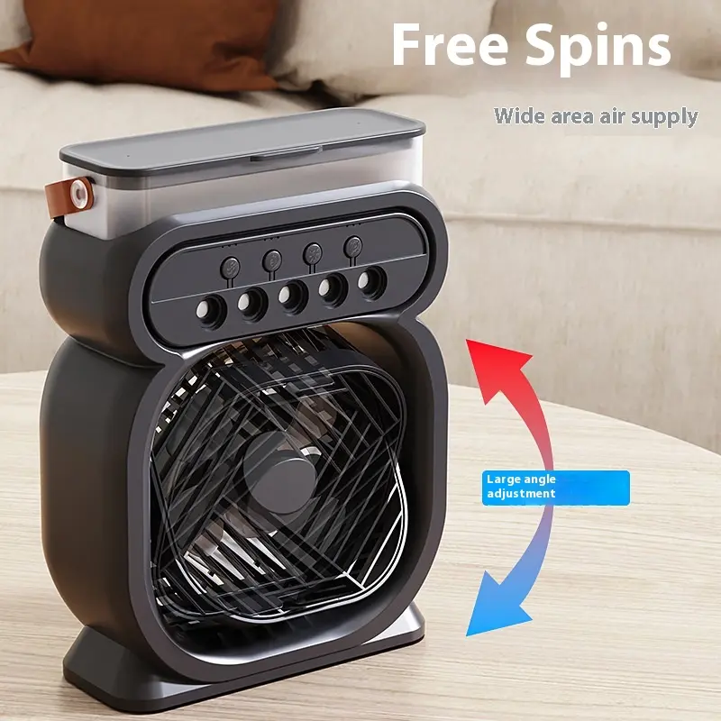 This portable air conditioner fan is designed with 7 colors of lighting, providing gentle illumination. Activate the three-in-one function