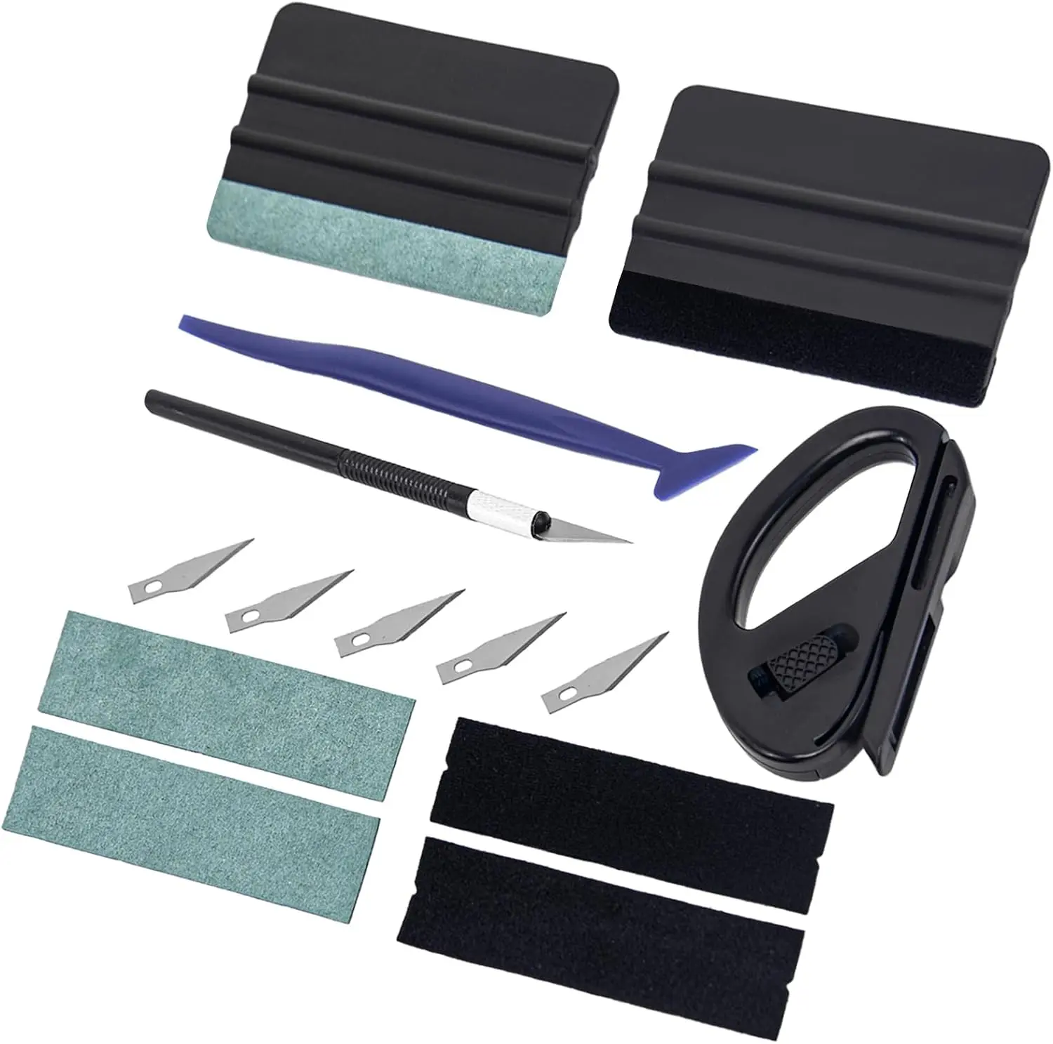 ·2 Different Vinyl Squeegee & Replacement: The suede felt squeegee removes air bubbles, smoothing vinyl wrap without scratching. The fabric felt squeegee is great for removing water and cleaning dust during car wrap installation. Plus, you'll get four extra felt replacements.