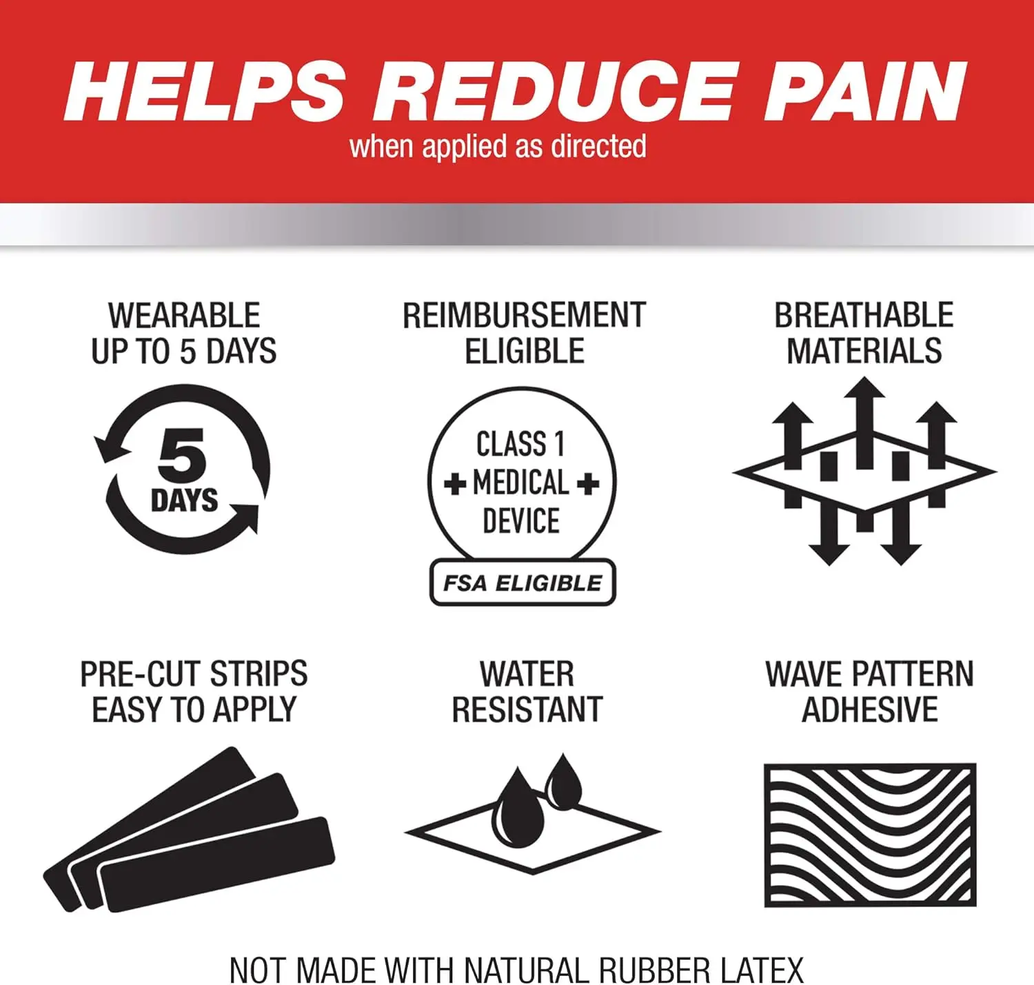 ·WEAR UP TO 5 DAYS: Designed to comfortably stick for up to five consecutive days allowing you to move freely and reduce pain in the process