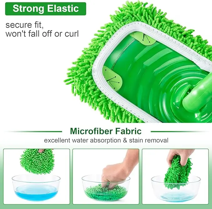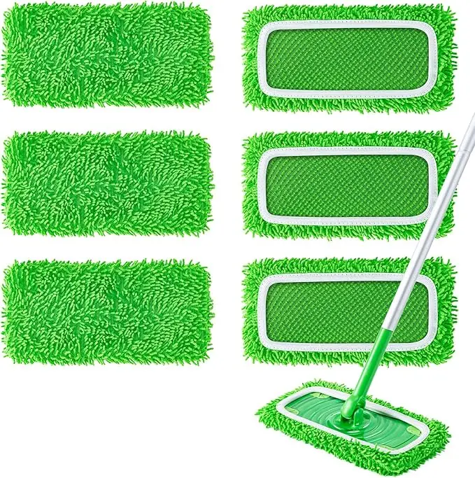 Elevate your cleaning routine with these 6Pcs Reusable Microfiber Mop Pads. Perfectly compatible with Swiffer Sweeper Mop, these cloths are ideal for both dry and wet mopping. Ideal for hardwood and stone floors, they ensure a thorough clean. The green color adds a touch of freshness to your cleaning tools.