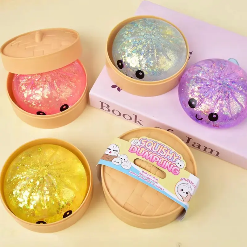 Glitter Dumpling Squishy - Sparkly Bao Bun Stress Toy in Steamer Basket | Slow-Rising Sensory Fidget for Anxiety Relief (Random Color)