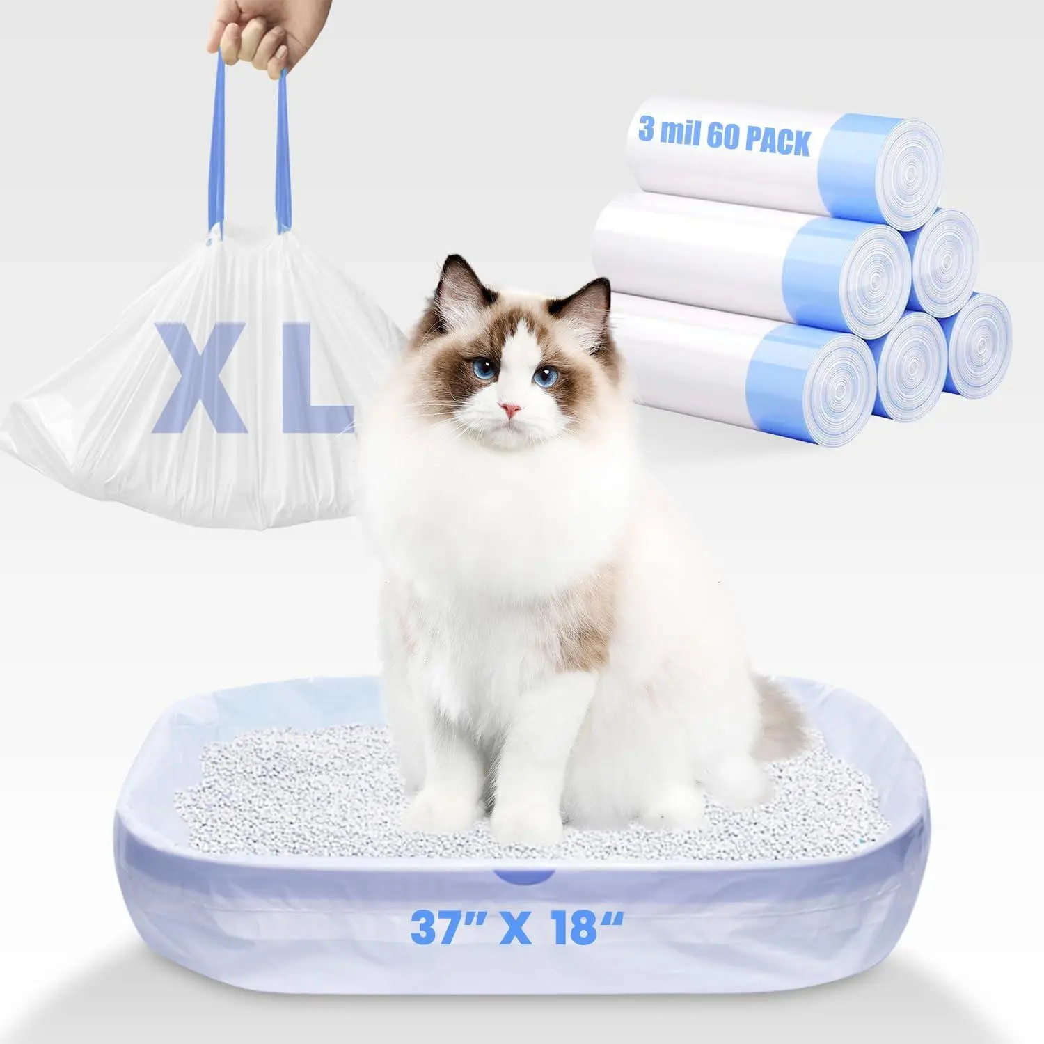 60 Pack large cat litter bags,Size is 37LX18H", providing ample coverage for the litter box.