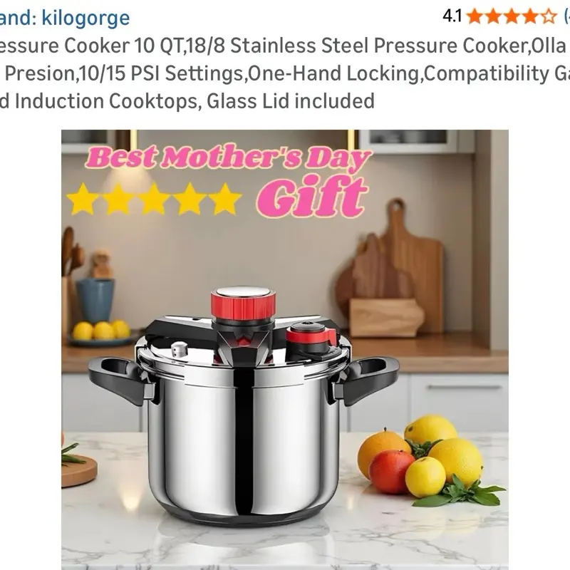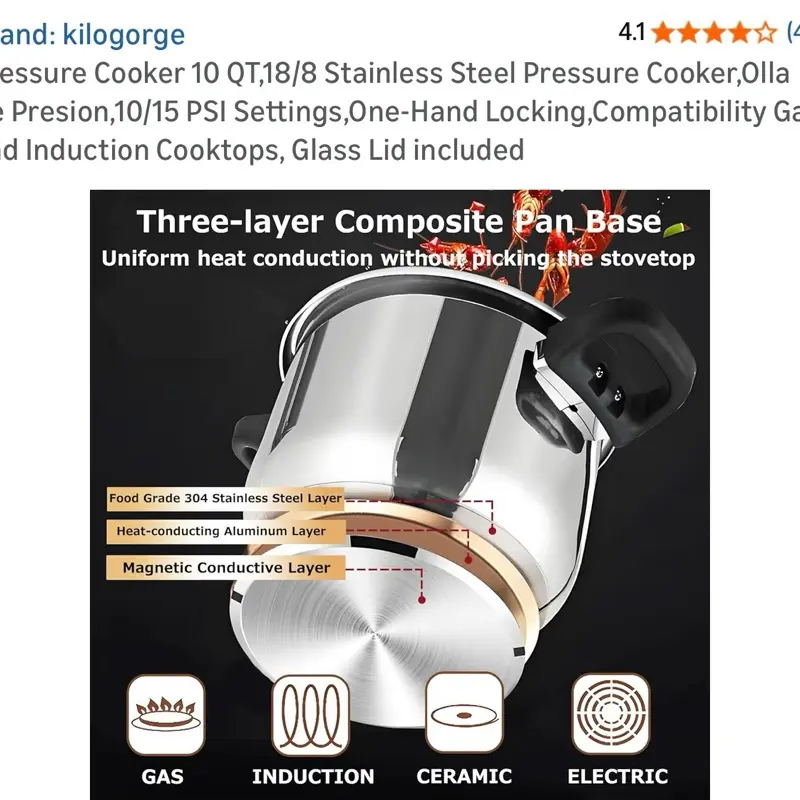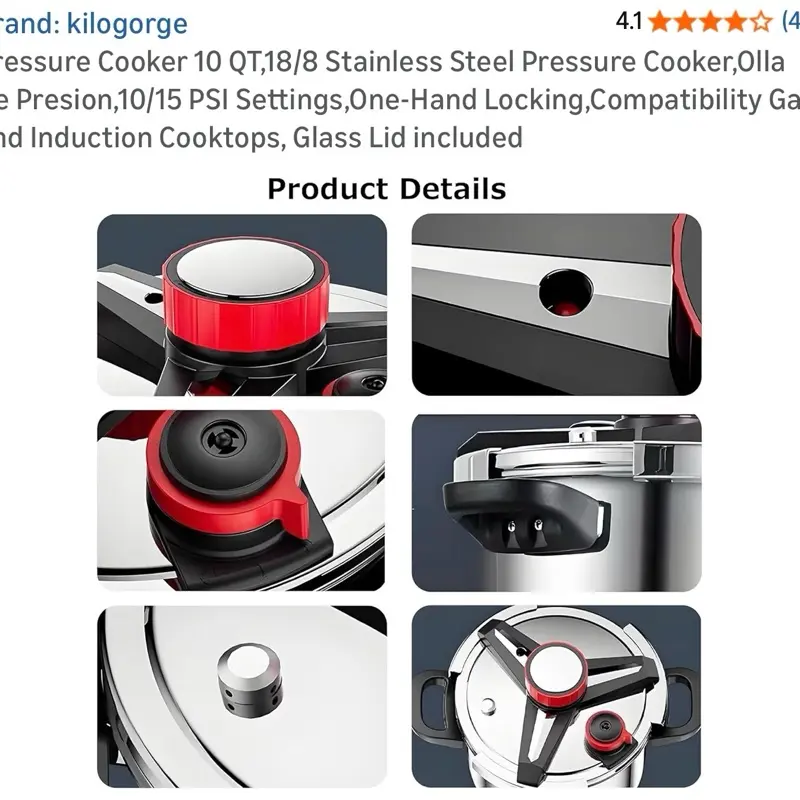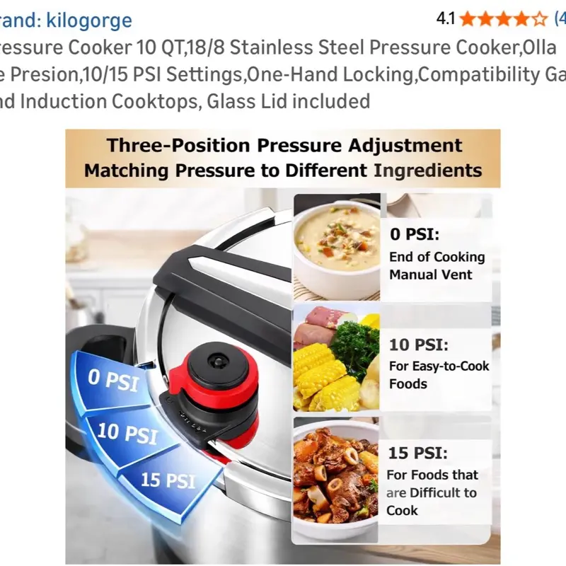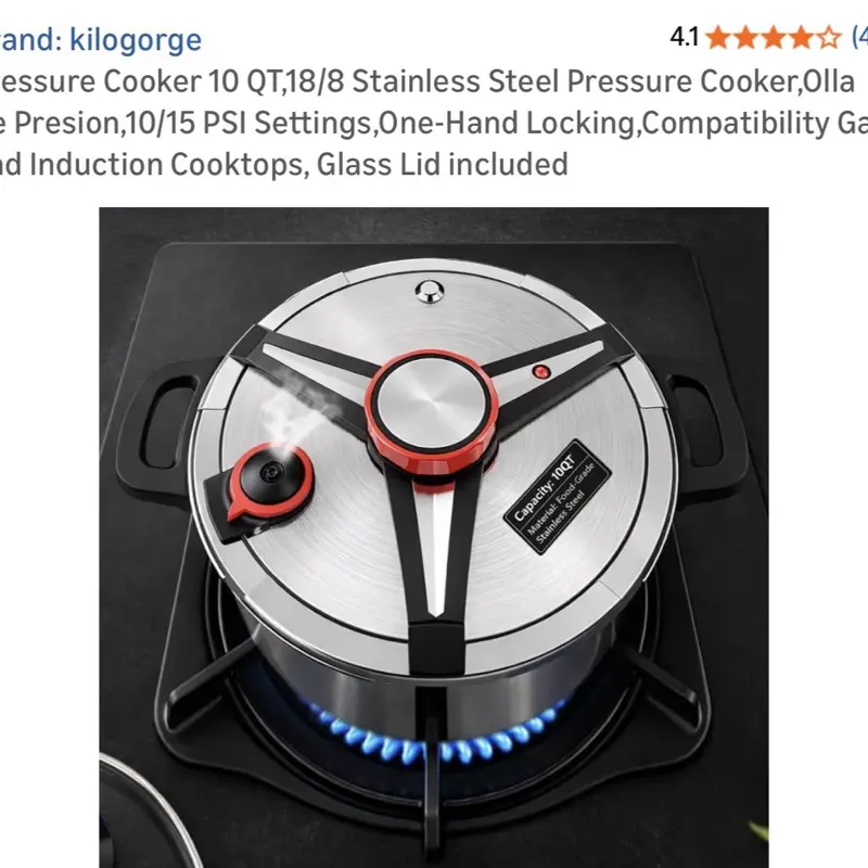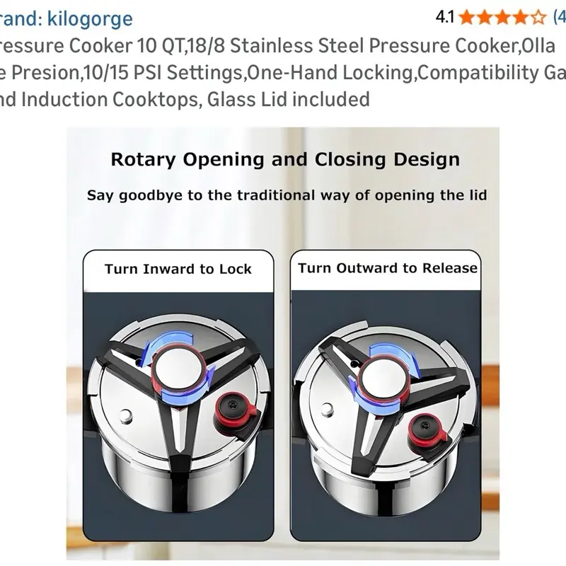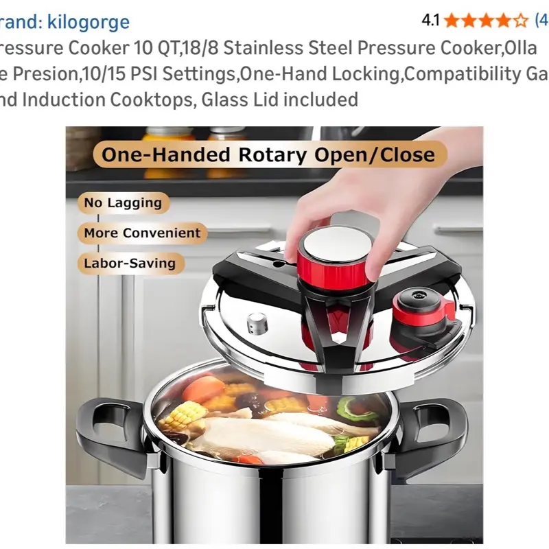 18/8 Stainless Steel Pressure Cooker 10 QT, [Save 70% Cooking Time] Olla De Presion with Food-Grade Body [One Hand Operation] Rotating Lock/Unlocking Lid System, Steam Rack Included