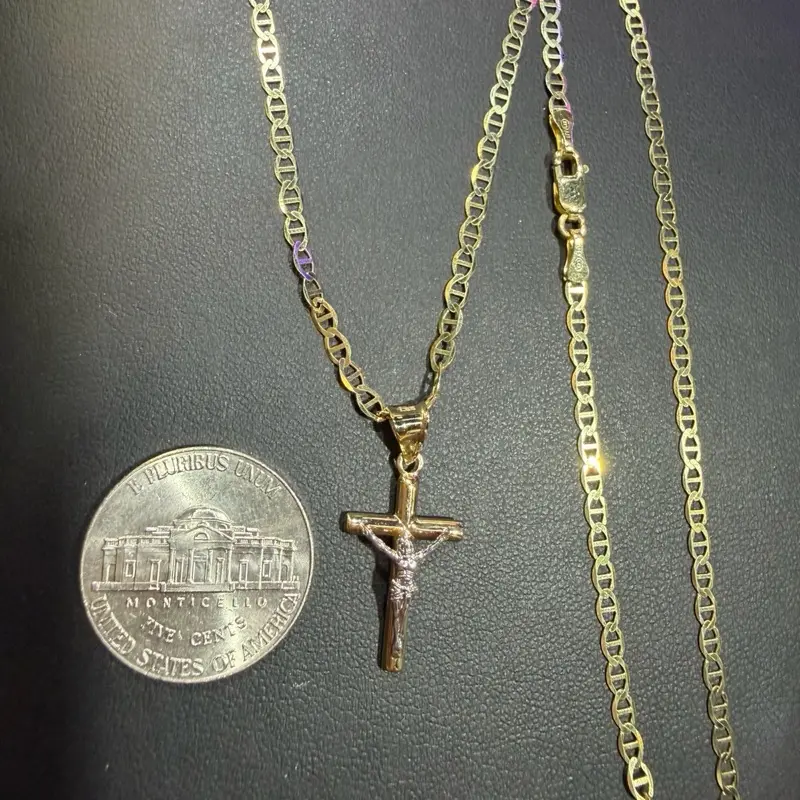 🌟 14Kt Gold Mariner Chain 2.5mm 20” + Crucifix Pendant