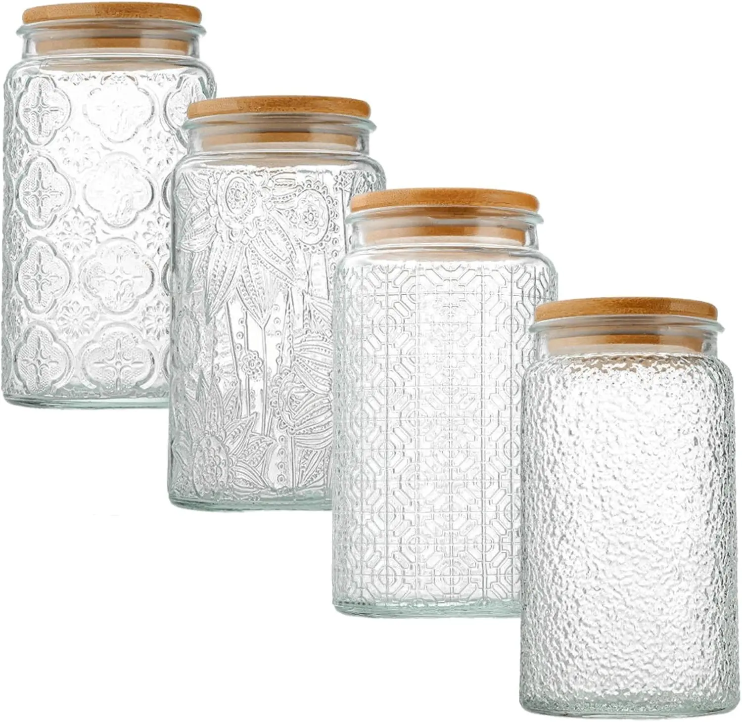 Glass Storage Jar with Airtight Bamboo Lid – 35oz Vintage Kitchen Container