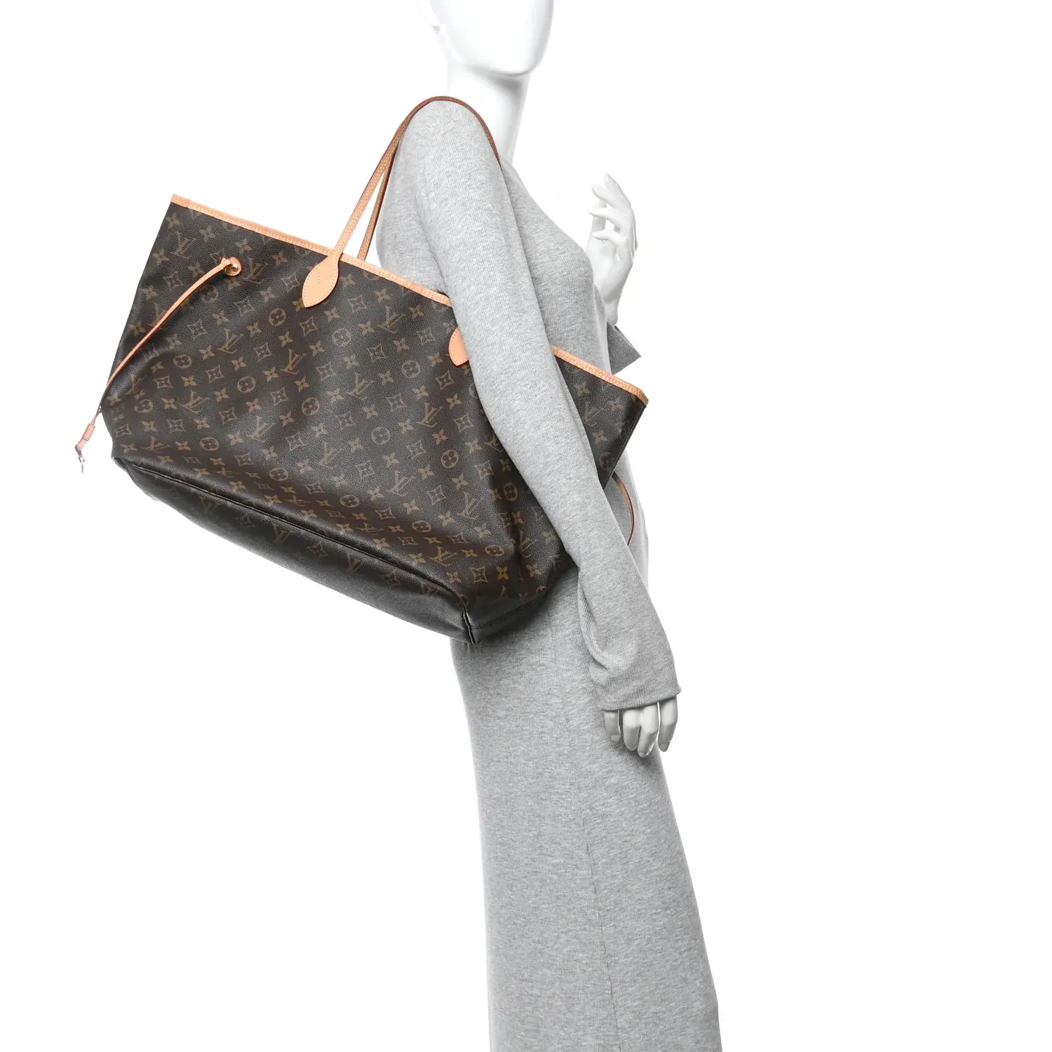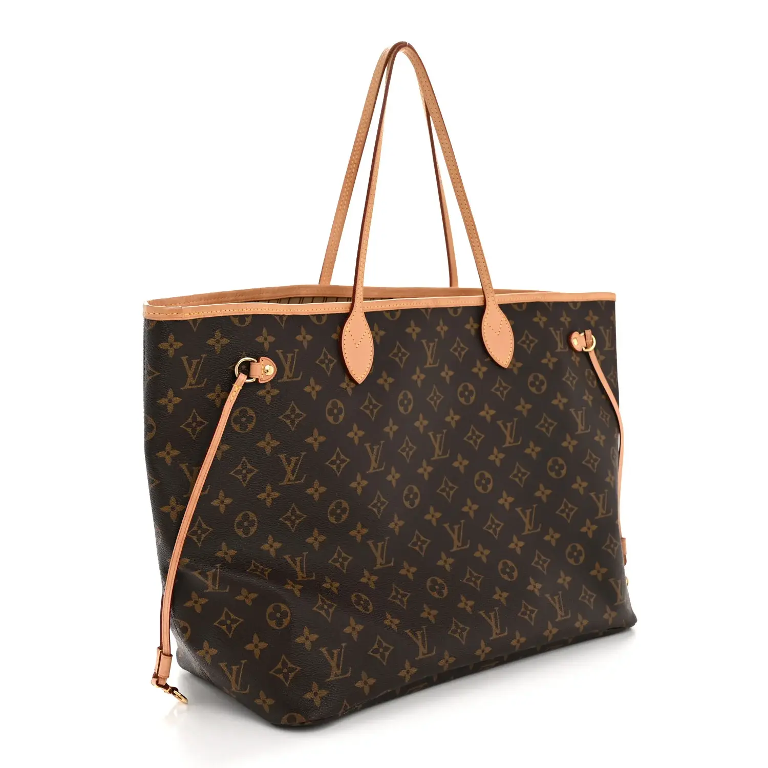 This is an authentic LOUIS VUITTON Monogram Neo Neverfull GM. This chic tote is finely crafted of signature Louis Vuitton monogram on coated canvas. This shoulder bag features vachetta cowhide leather shoulder straps, side cinch cords, and trim with polished brass hardware. The wide top opens to a striped beige fabric interior.