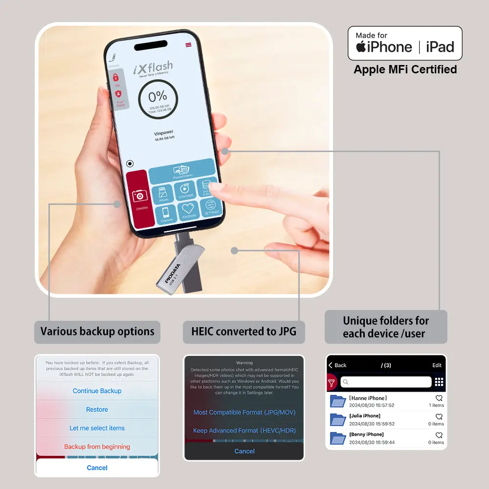 Whether for iPhone photo backup, secure media storage, or transferring files across devices, the iXflash delivers true 128GB capacity, performance, and convenience.