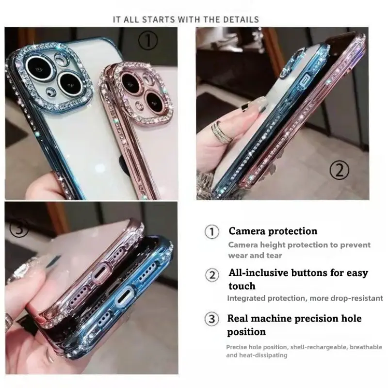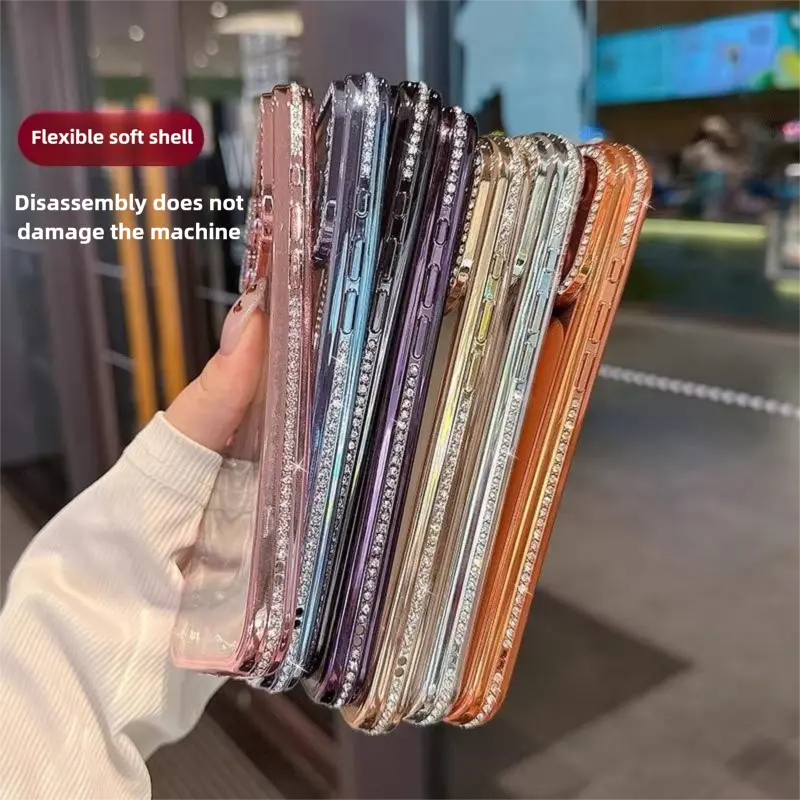Transparent bling diamond phone case,Compatible with iPhone17Promax/16Pro/15Plus/14/13/12 series Case,Luxury Glitter Bling Sparkly Diamond Electro Plated Frame Edge Border Full Body Protective Clear Soft Shockproof Cover Phone Case