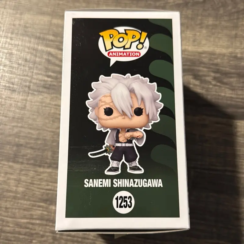The Sanemi Shinazugawa (#1253) Funko Pop! from Demon Slayer: Kimetsu no Yaiba captures the fierce and unpredictable Wind Hashira in a battle-ready stance. He is shown gripping his Nichirin sword, reflecting his aggressive fighting style and intense personality.