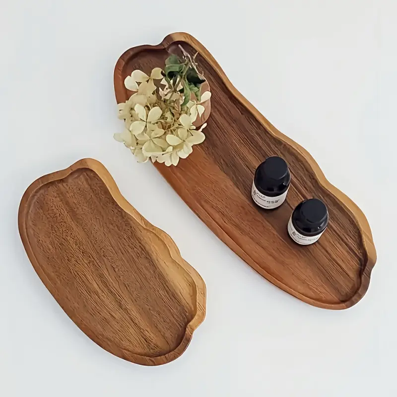 5. 1/2 Set Wooden Tray, Multi-functional Wooden Tray, Cloud-shaped Tray, Cosmetic Display Tray, Perfume Tray, Bathroom Tray, Tableware Tray, Cake Tray, Kitchen Tray, Garden Tray, Party, Outdoor Festival, Buffet Tray, Display Tray, Decorative Tray, Party Tray