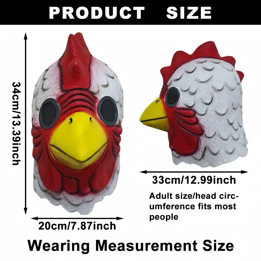Product Overview: This luxurious cartoon rooster latex headpiece is the perfect companion for Halloween, carnivals, and cosplay parties! Made of latex, it features a vibrant Miami-style color-blocking design and exquisite details, making you instantly stand out from the crowd. Whether for party pranks, stage performances, or short video shooting, this rooster mask will bring you plenty of fun and attention!