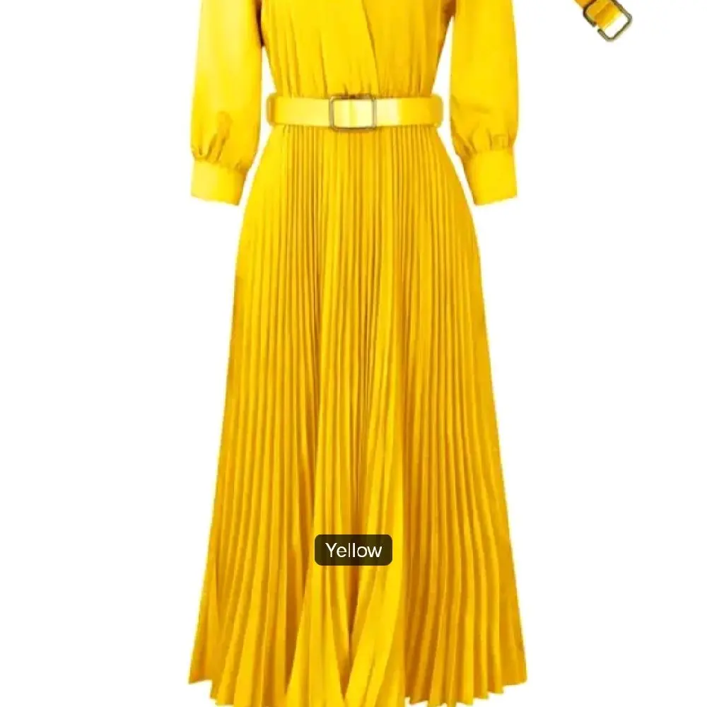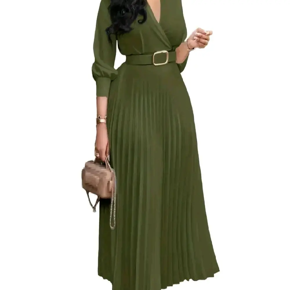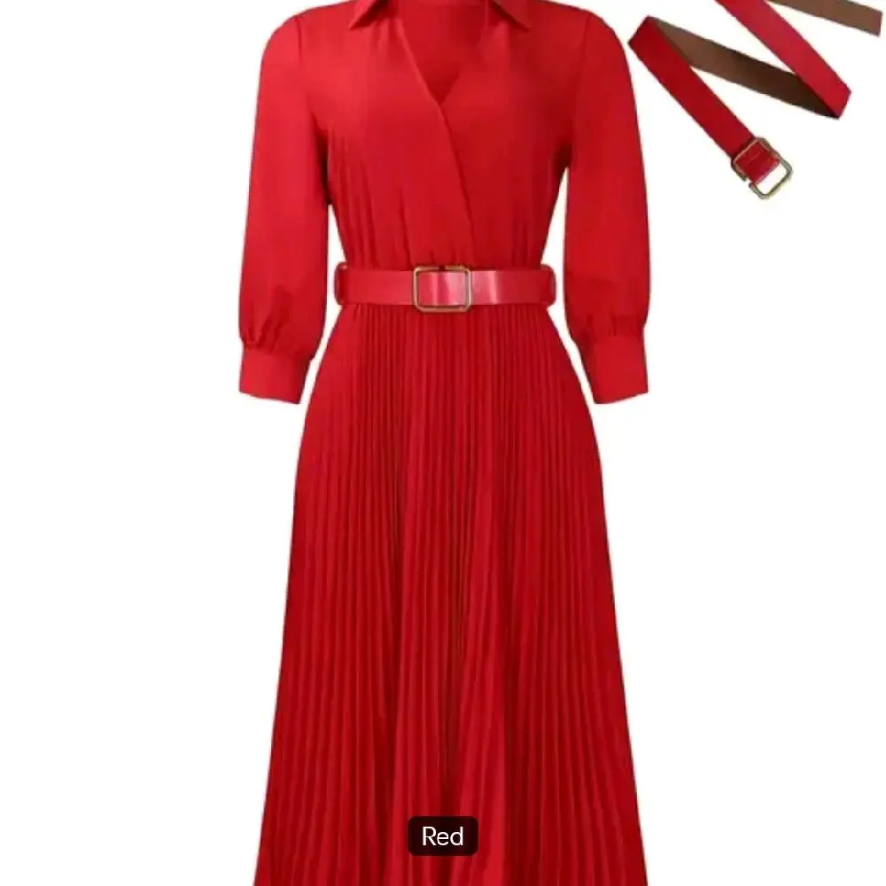 This long sleeve V-neck dress is ideal for office wear during spring and summer. Crafted from chiffon, it offers a light and breathable feel, perfect for warm weather. The pleated design adds a touch of sophistication, making it suitable for professional settings.