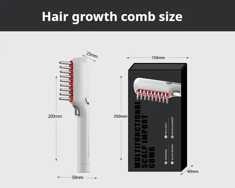 This advanced hair growth comb combines EMS microcurrent technology and clinically-proven red light therapy. The EMS stimulates dormant hair follicles, while the red light reduces scalp inflammation and promotes circulation, creating the optimal environment for thicker, healthier hair.