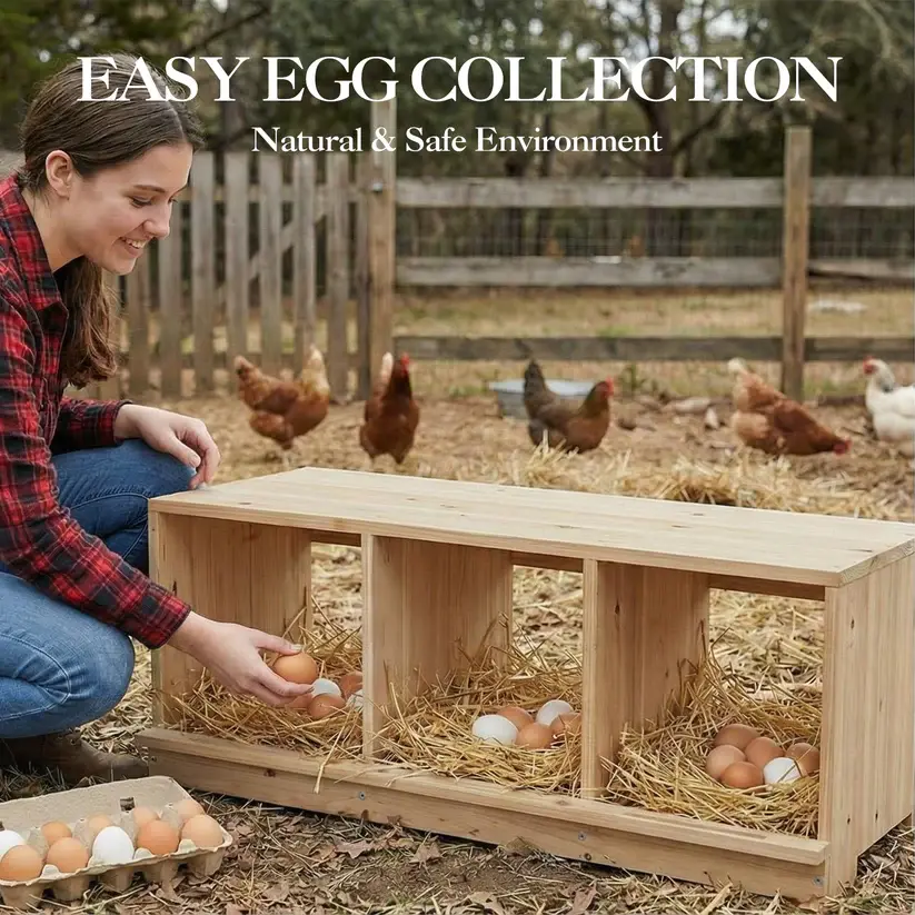 【 3-Compartment Single-Layer Layout】: Specifically designed for smaller flocks, this single-tier nesting box provides three private, spacious compartments. It offers a safe and quiet environment for hens to lay eggs, helping to reduce stress and boost productivity in your backyard coop.