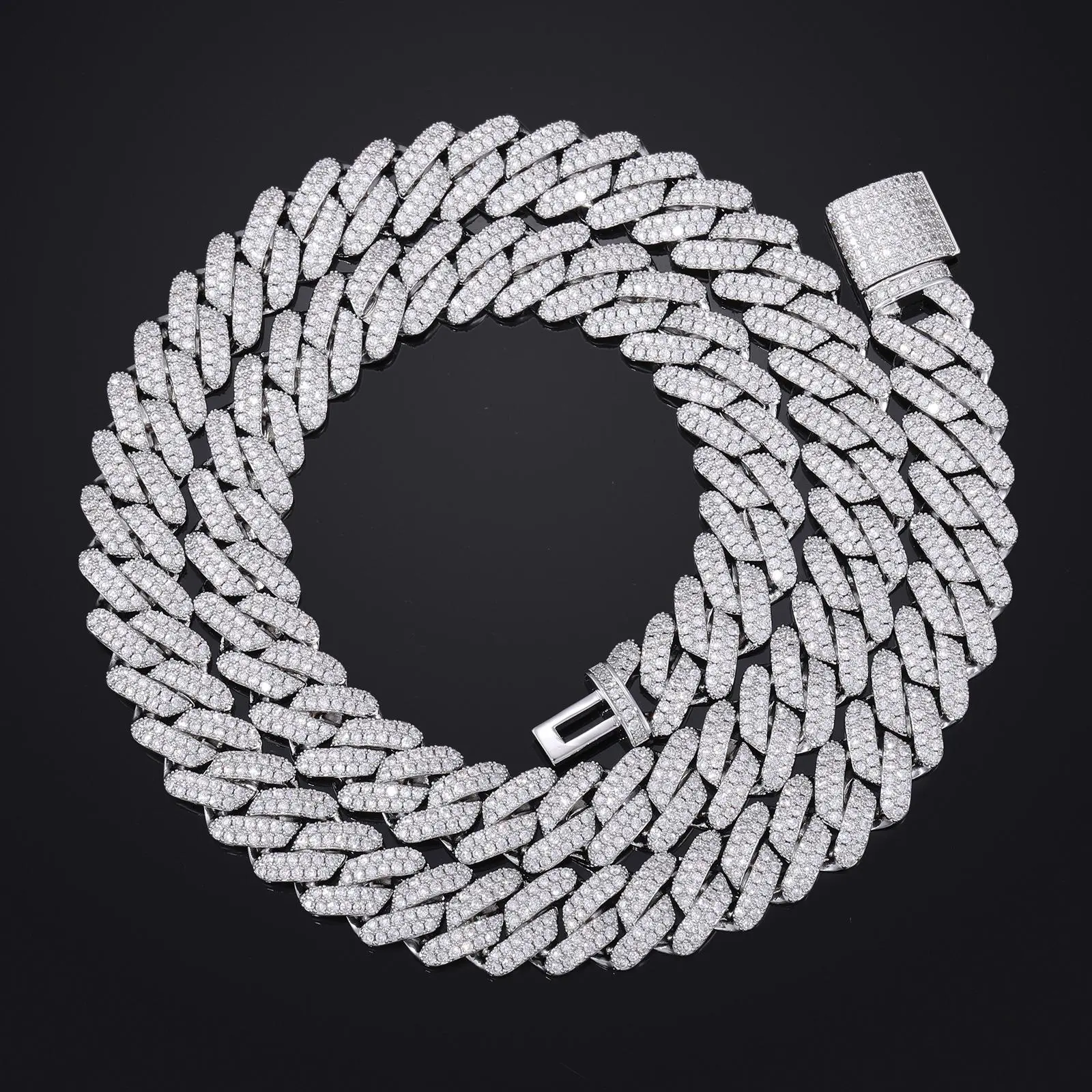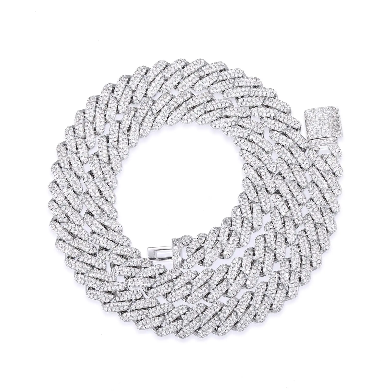 Mois Pass Test Hip Hop Jewelry 14mm 18K Gold Plated Brass AAAAA CZ Diamond Iced Out Cuban Link Chain Necklace for Men