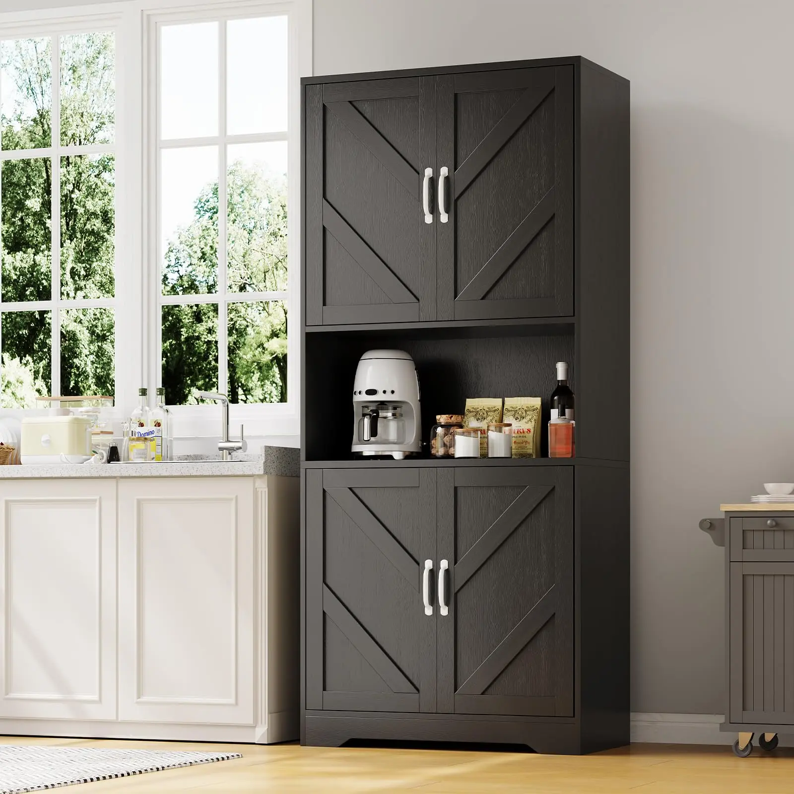 ZR-Garvee 70 Inch Tall Kitchen Pantry Cabinet with Microwave Stand and 4 Doors Large Storage Hutch with Adjustable Shelves Freestanding Cupboard for Pantry and Kitchen