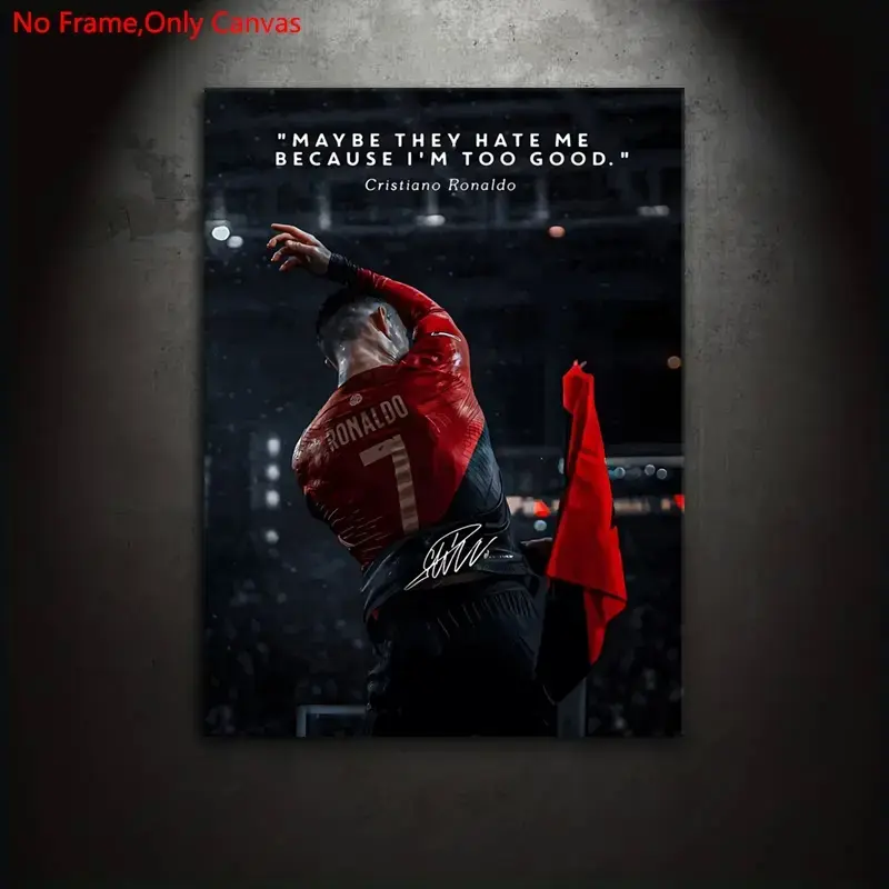 CR7 1 piece/set of frameless canvas painting print poster, Canvas Prints, classic, Artistic illustration art, Ronaldo inspirational quotes, perfect gift for football culture lovers, ideal gift for bedroom, living room, mural, wall decoration, room decor