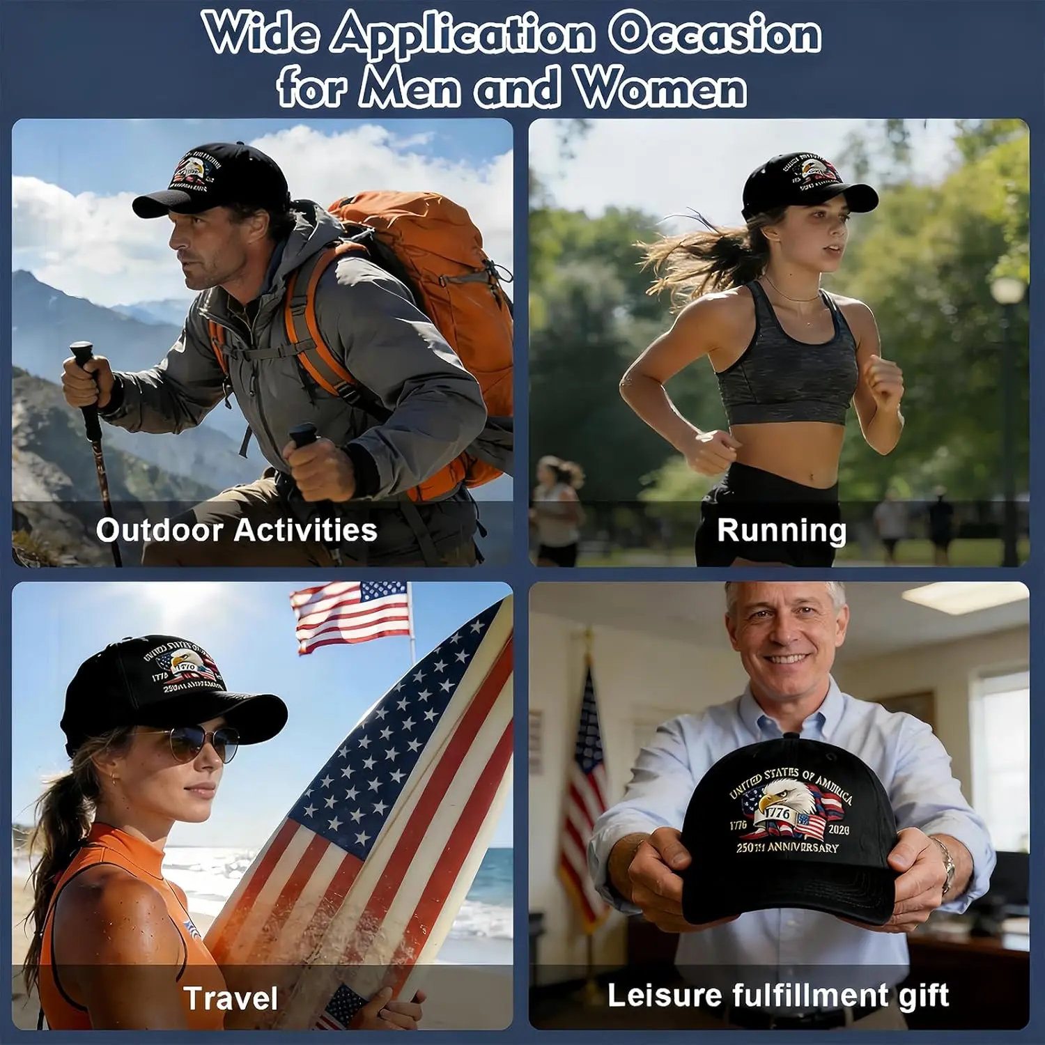 ·Ready for Festivities, Sports & Daily Adventures:Whether you’re attending national celebrations, watching fireworks, fishing, playing golf, hosting backyard barbecues, or traveling, this 250 anniversary merchandise hat is a practical and symbolic companion. Its durable construction and adaptable design make it suitable for a wide range of settings—blending heritage honor with everyday functionality. It’s the perfect cap for showing your spirit during America’s 250th anniversary year and beyond.