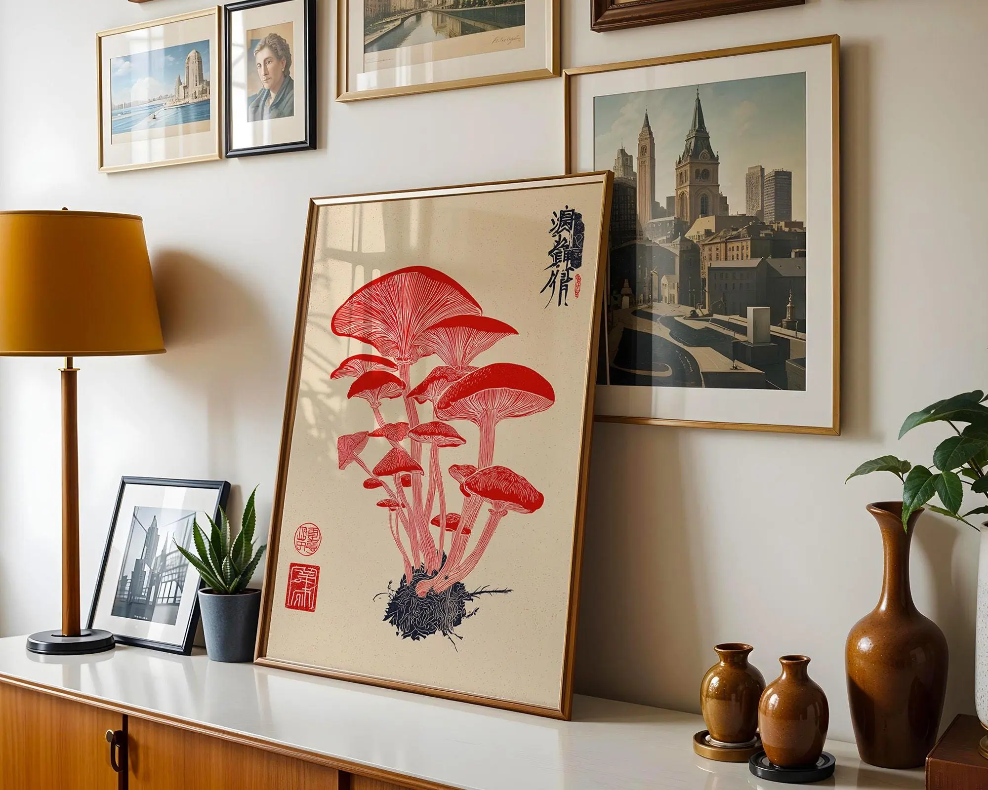 Vintage Botanical Mushroom Art Print, Japanese Inspired Wall Art, Cottagecore Decor, Dark Academia, Vintage Neutral Botanical Print