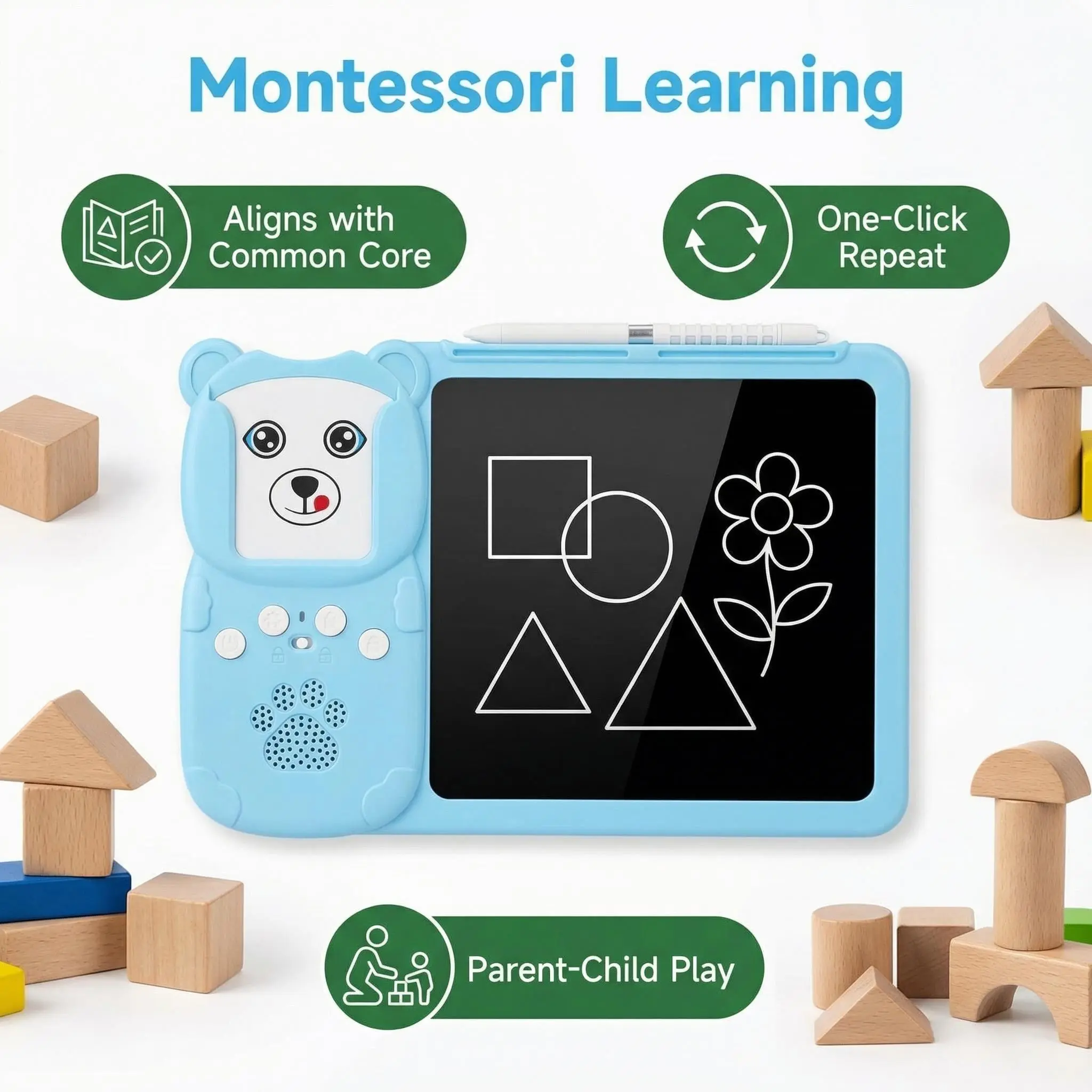 Aligns with mainstream educational tools in American preschools, adhering to the North American Common Core Curriculum. Aids in early development of logical thinking and cognitive abilities. The one-click repeat feature fosters interactive reading between parents and children. It's more than a toy; it's a valuable educational resource. 📚