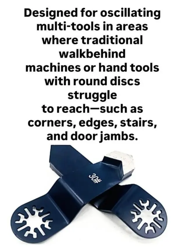 ·This attachment utilizes a -V- shaped segment with industrial-grade diamond particles for high-abrasion tasks, making them ideal for delicate, precise, and narrow spaces
