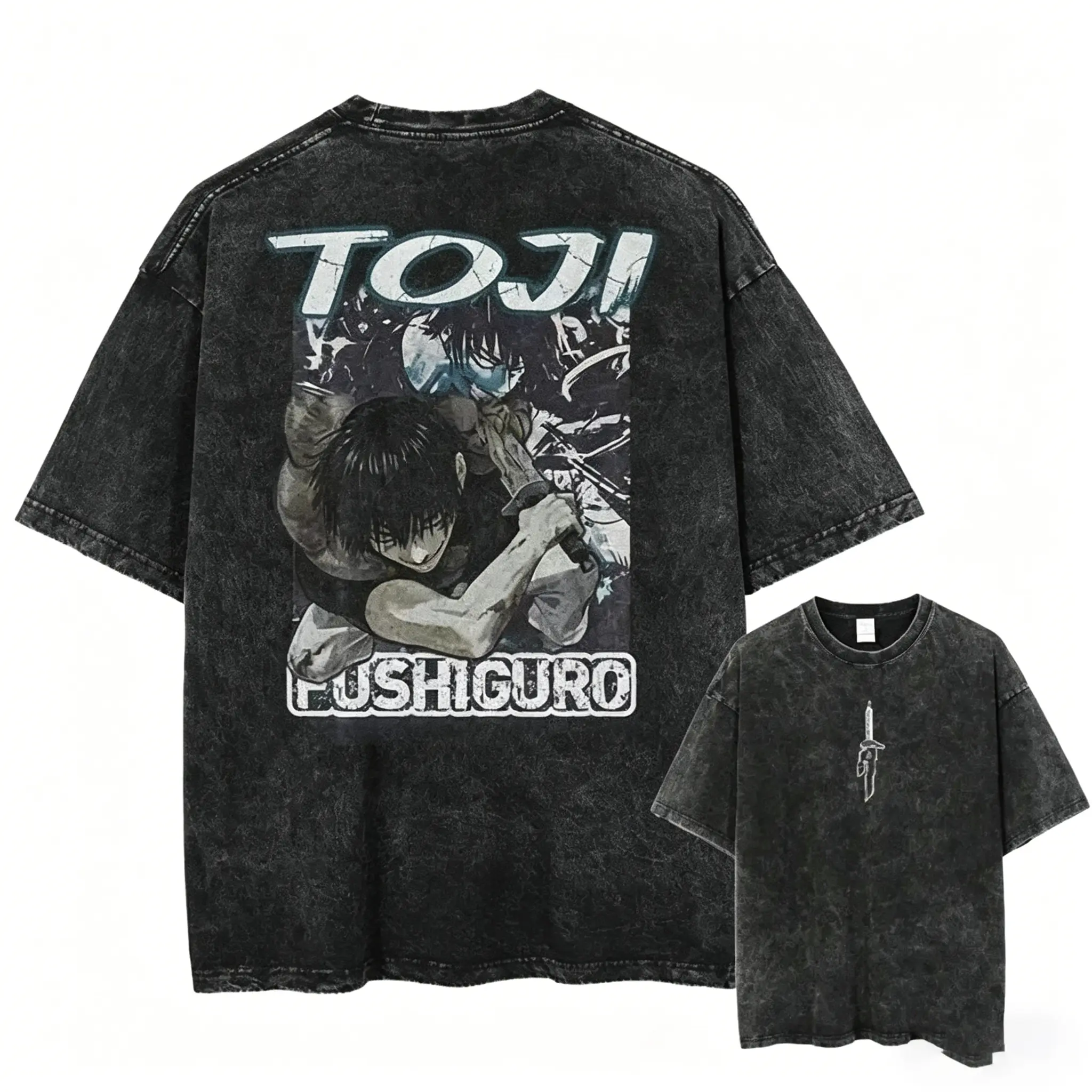 Rep the iconic Jujutsu Kaisen character Toji Fushiguro, the legendary "Sorcerer Killer", with this stunning vintage-style action tee! Featuring a striking, high-contrast illustration of Toji in his iconic battle pose, paired with bold "TOJI FUSHIGURO" lettering and a mini Inverted Spear of Heaven () symbol on the chest. This shirt captures the raw, unstoppable power of the strongest non-sorcerer in Jujutsu Kaisen history. Ideal for JJK stans, anime fans, or anyone who loves vintage anime streetwear.