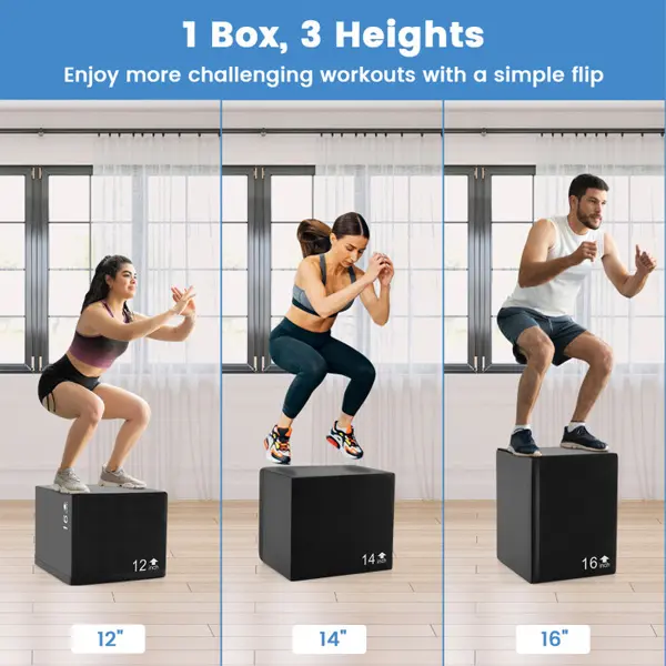 • 1 Box, 3 Heights: Equipped with 3 different heights including 12", 14" and 16", this foam plyometric box allows you to enjoy more challenging workouts with a simple flip, providing a more comprehensive workout experience.