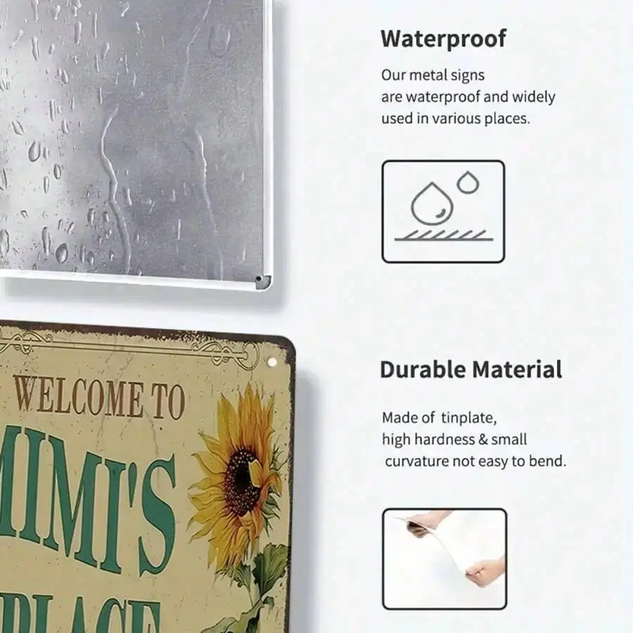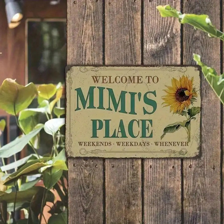 1PC 8x12 inch Vintage Tin Sign, Welcome To Mimi's Place, Rustic Home Decor, Floral Wall Art, Perfect High-Quality Metal, home decor plaque funny bar sign Rectangle Design Plaque Gift easy mount lover