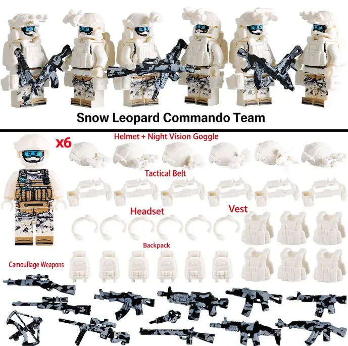 6 PCS Compatible Building Blocks Military Set - Snow Leopard Commando Minifigures, Special Forces Army Men, Small STEM Toy for Kids, Action Figures Gift for Boys