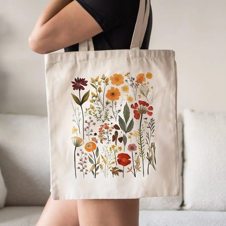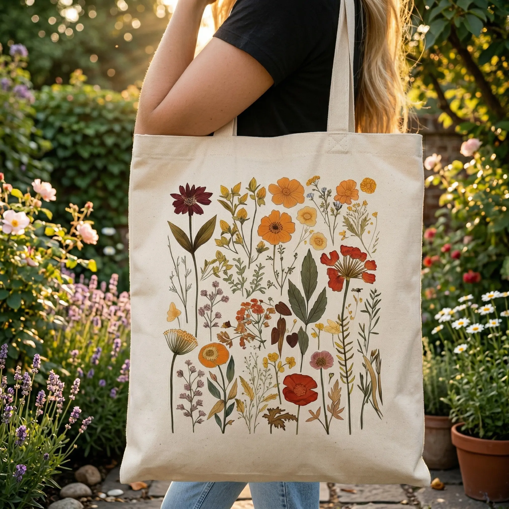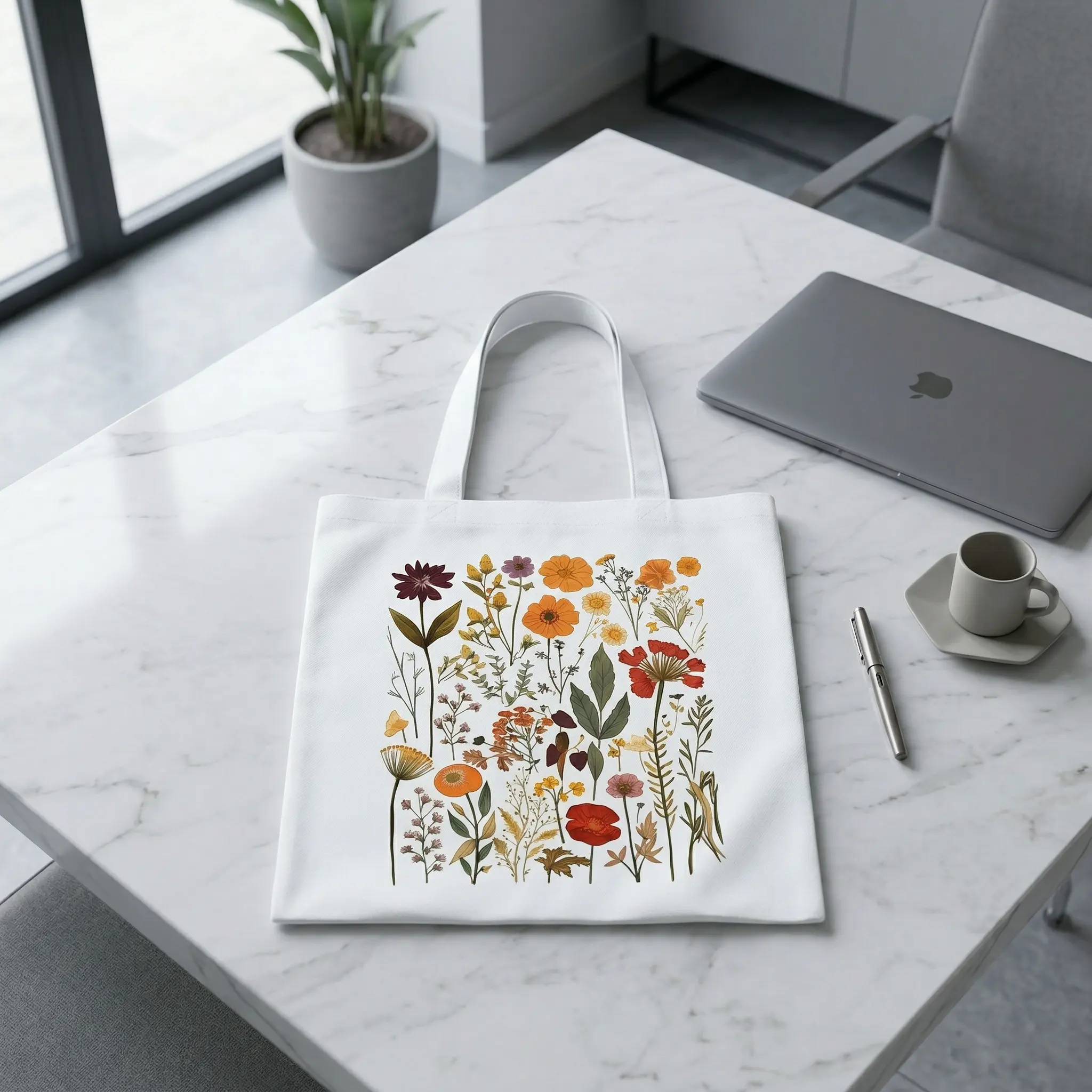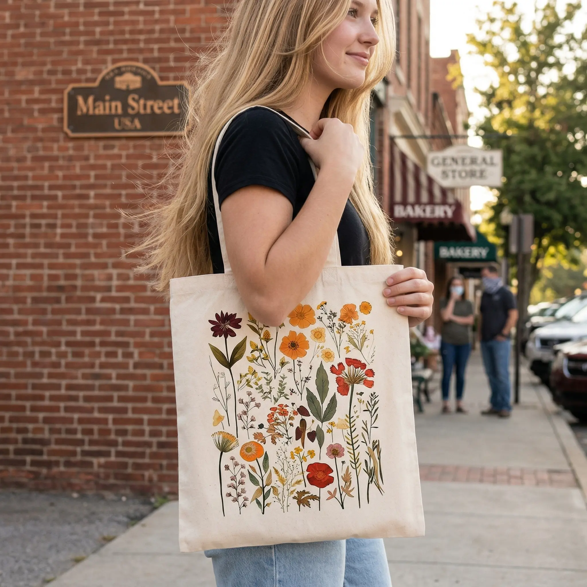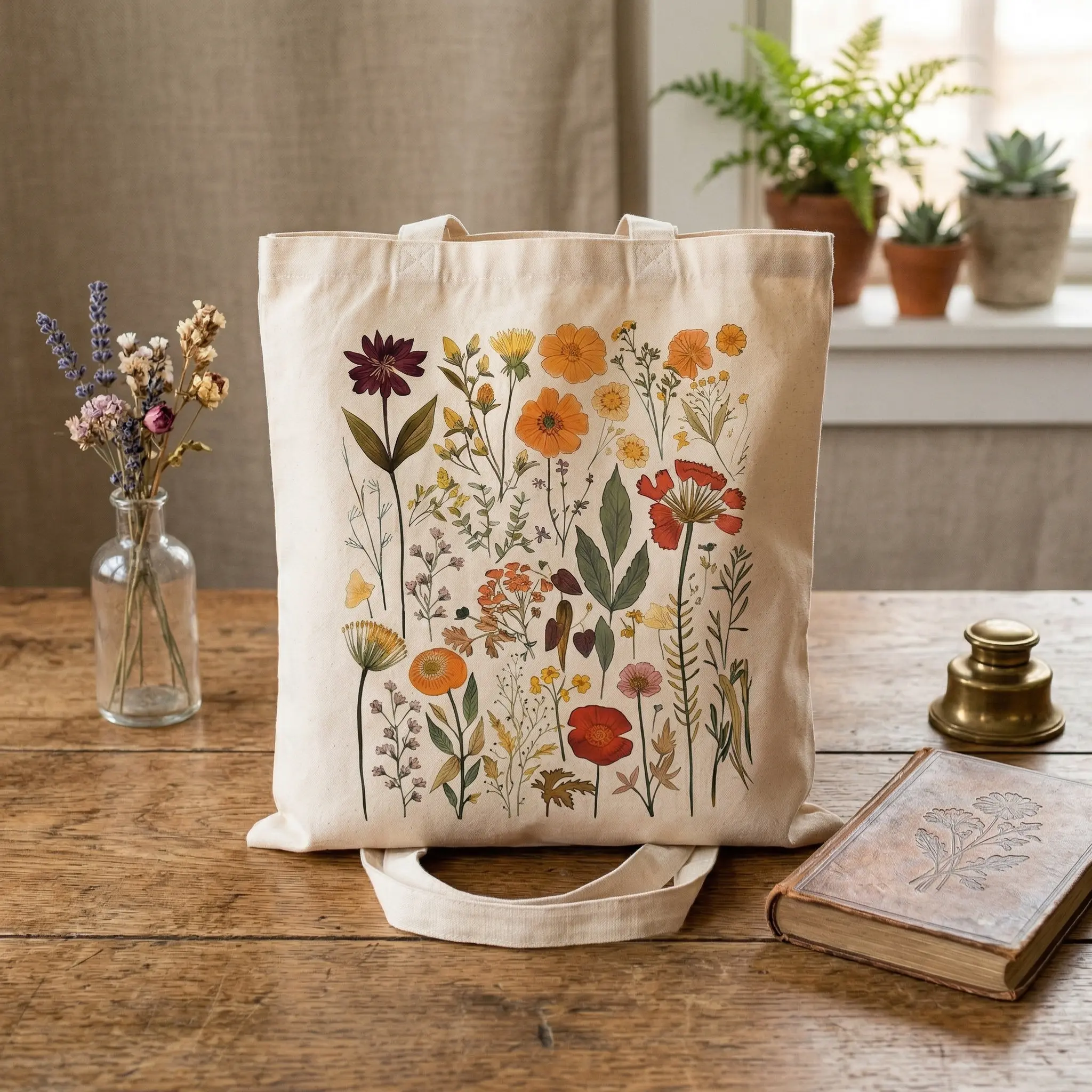 Wildflower Botanical Tote Bag, Vintage Floral Canvas Tote, Cottagecore Flower Bag, Aesthetic Nature Tote, Cute Gift for Her