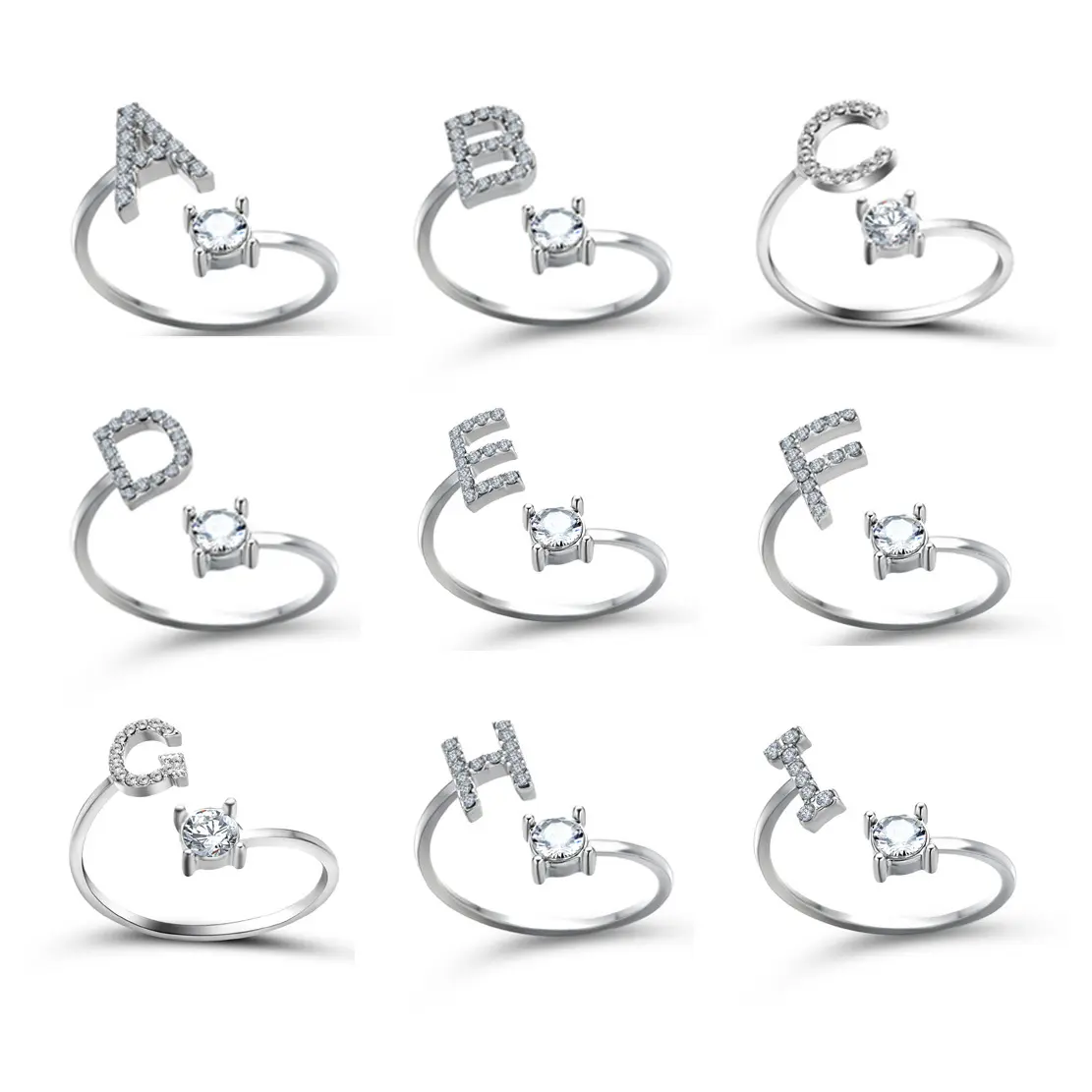 New Design Adjustable 26 Initial Letter Ring Fashion Jewelry For Women Simple Elegant Jewelry