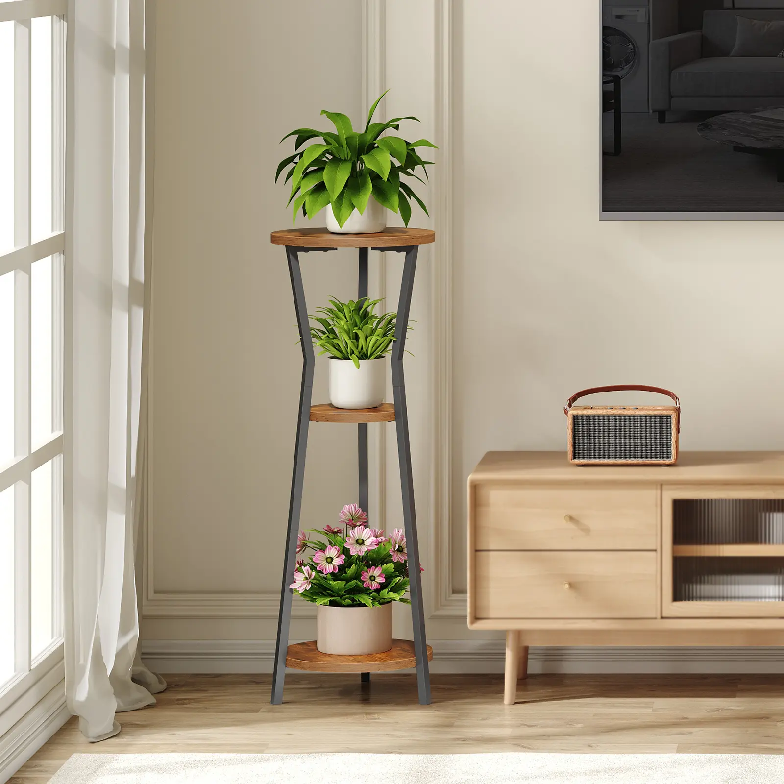 ·Industrial Rustic Style: Blending a black metal frame with rustic brown shelves, the flower pot holder delivers an industrial look. Its round shelves and curved legs blend into various decor, serving as both a functional plant display and a stylish accent piece