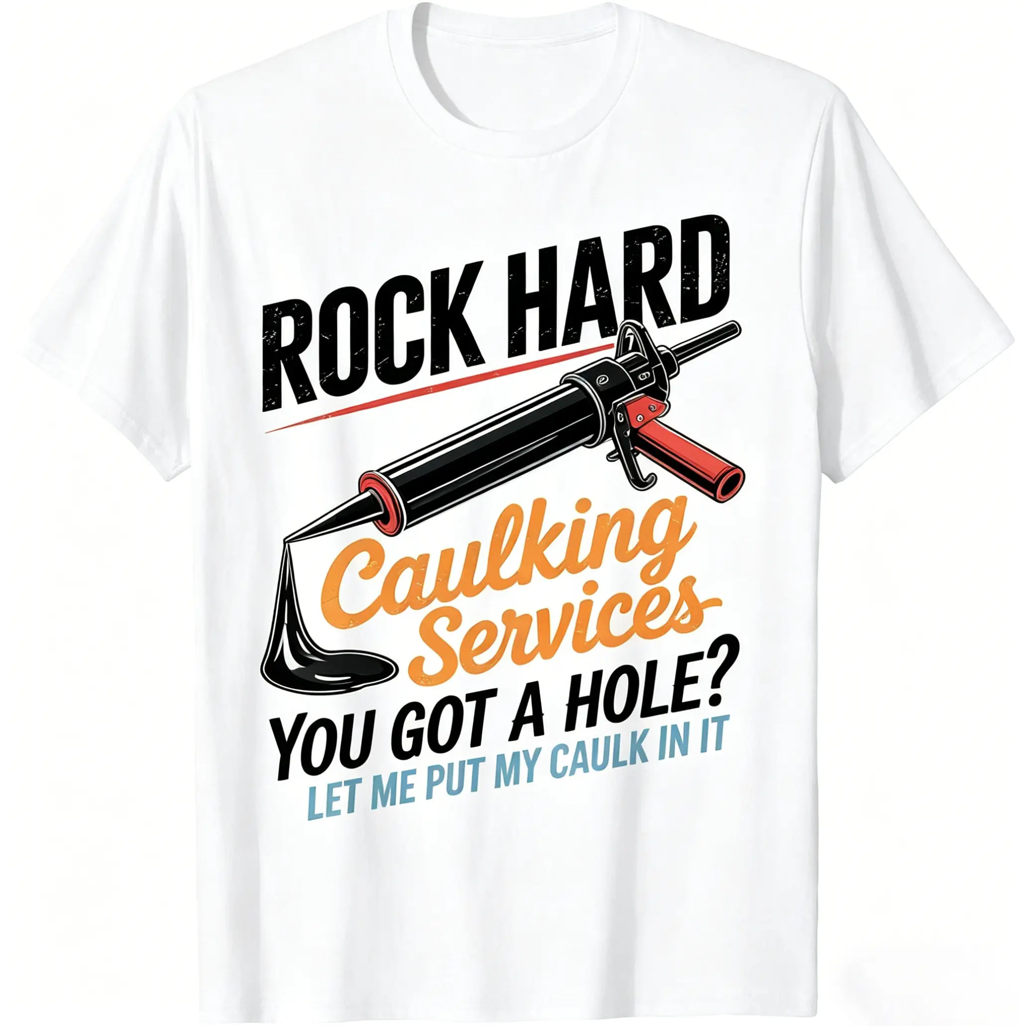Unisex Rock Hard Caulking Service Funny Adult Humor T-Shirt