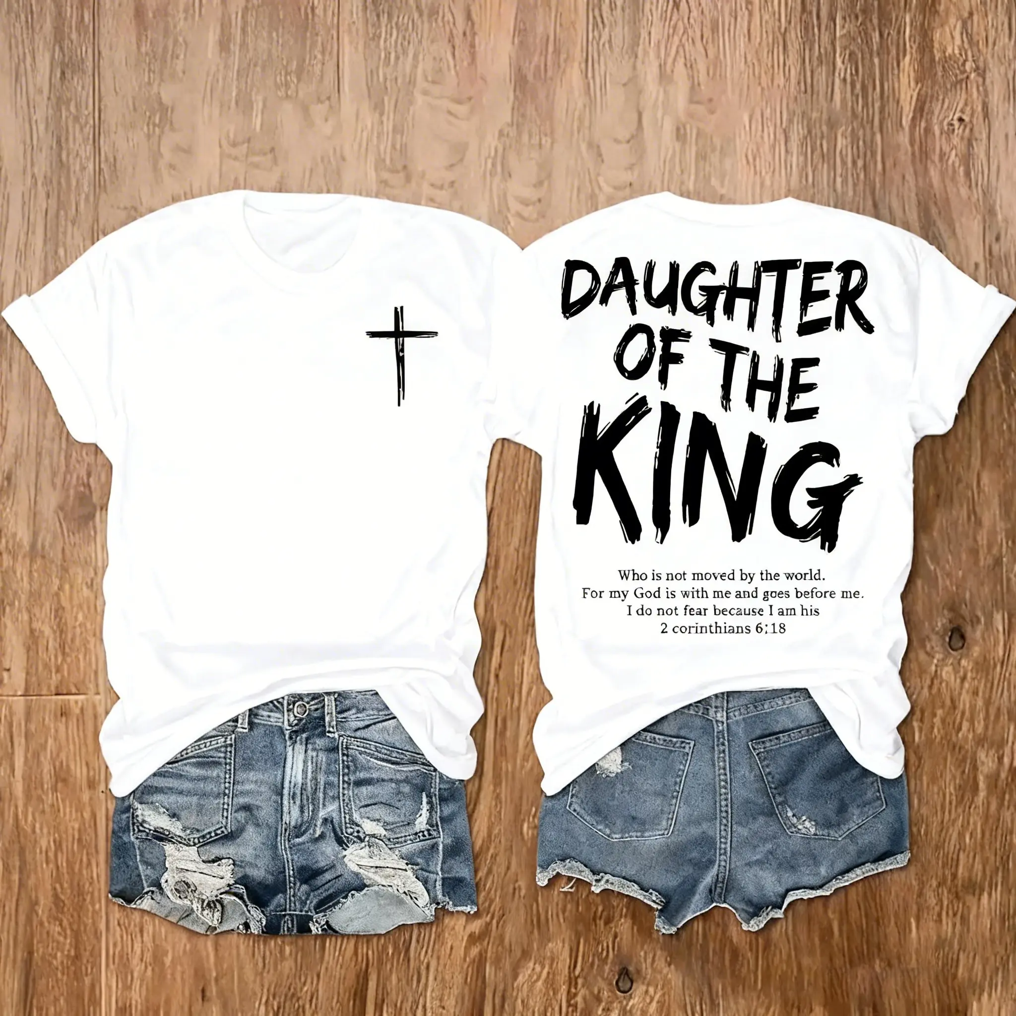 Comfortable and stylish for wearing at home or on the go King Jesus Graphic T-Shirt - Women's Soft Casual Crew Neck Short Sleeve T-Shirt, Double Sided Print,, Essential for Women