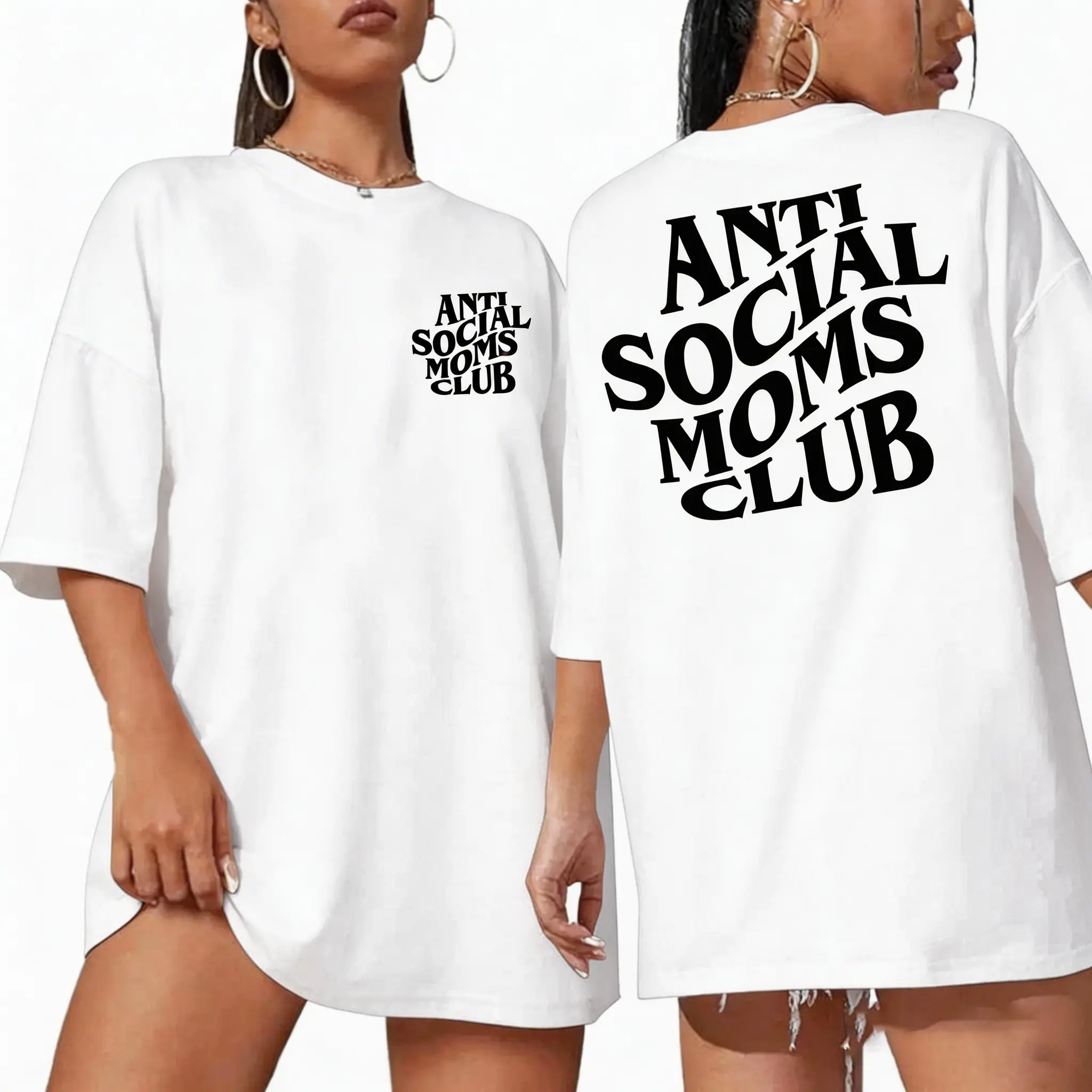 Anti Social Mom Club Shirt Oversized Mama Shirts Funny Mom Life Graphic Tee Casual Short Sleeve Tops