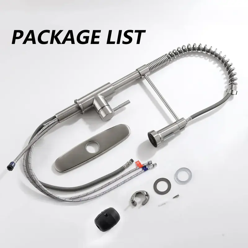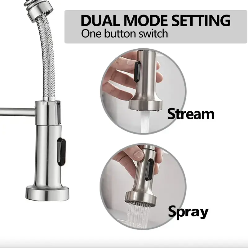 Elevate your kitchen game with this Matte Black Commercial Style Pull-Down Kitchen Faucet! Boasting a durable, rust-resistant matte black finish that resists fingerprints and water spots, it’s the epitome of modern elegance. Equipped with a high-elasticity coiled spring hose and a 360° rotating nozzle, it delivers dual spray modes—powerful jet for tough grease and gentle stream for rinsing fruits & veggies. Its compact design fits perfectly with 1-hole or 3-hole fixtures, making installation a breeze. The single-handle control ensures effortless temperature adjustment, while the ceramic cartridge guarantees leak-free use for years. Ideal for RVs, apartments, and family kitchens, it’s the ultimate upgrade for a cleaner, more efficient cooking space!