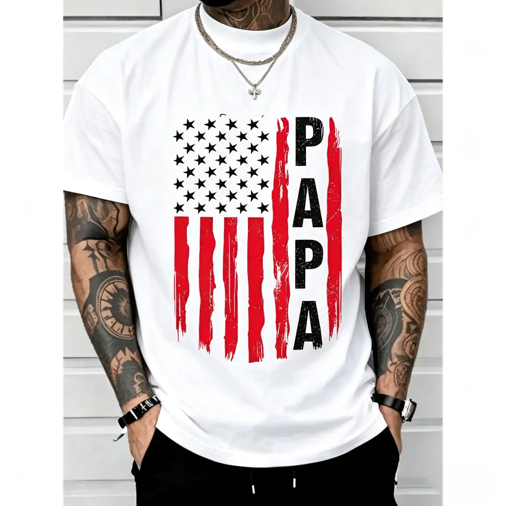 T - Shirt for Grandfathers: 'Papa' with Distressed American Flag Graphic for a Patriotic and Affectionate Vibe