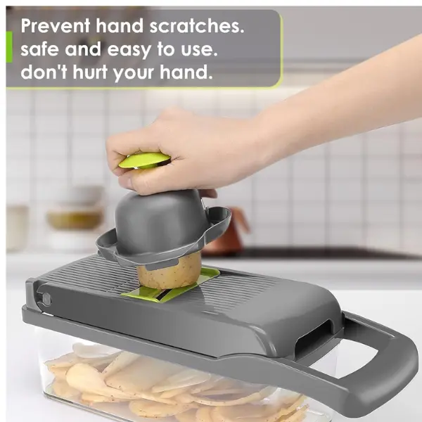 Transform your kitchen with the 7-in-1 Vegetable Chopper Pro & Mandoline Slicer. This versatile tool features stainless steel blades for efficient cutting. Perfect for onions, potatoes, and salads, it simplifies meal prep. Ideal for home and RV use, it's a safe kitchen tool.
