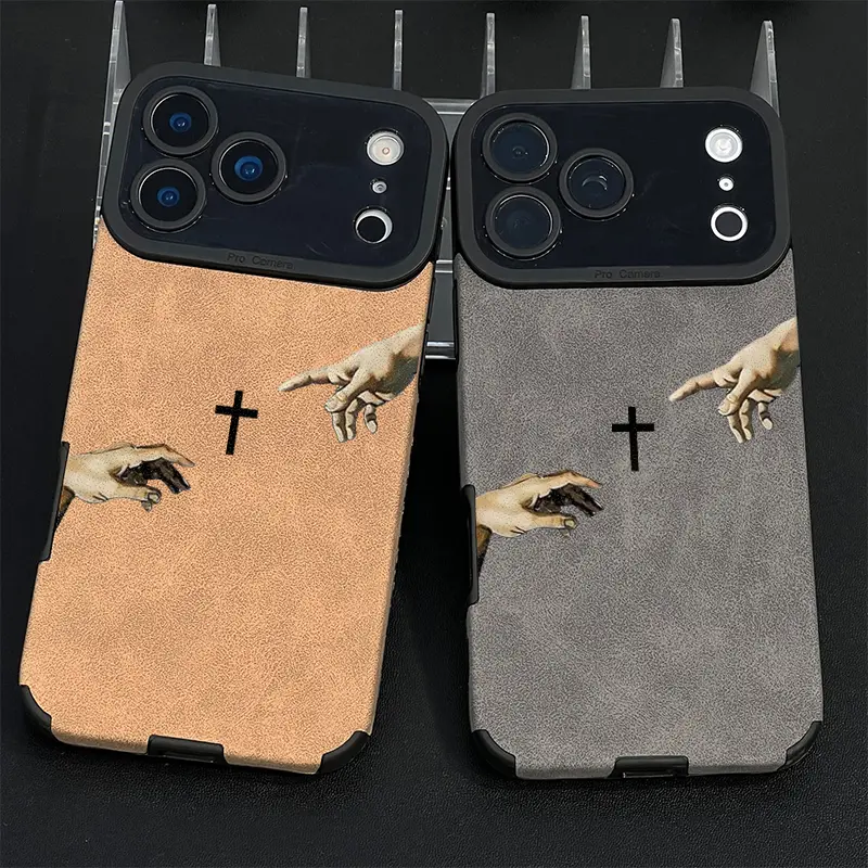 The Jesus Hand and Cross phone case is made of TPU and leather with a delicate touch that is skin friendly like velvet suitable for Apple 17 16 15 14 13 12 11 Pro Max Plus X XS Max