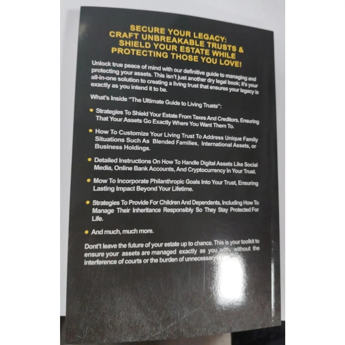 Don't leave the future of your estate up to chance. Scroll up and click the "Buy Now" button to secure your copy of "The Ultimate Guide to Living Trusts" and take control of your estate planning today!