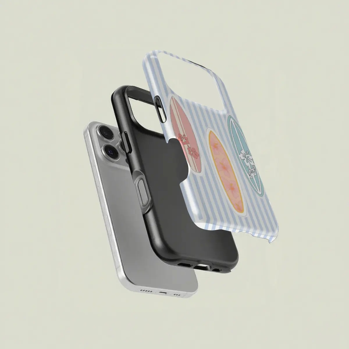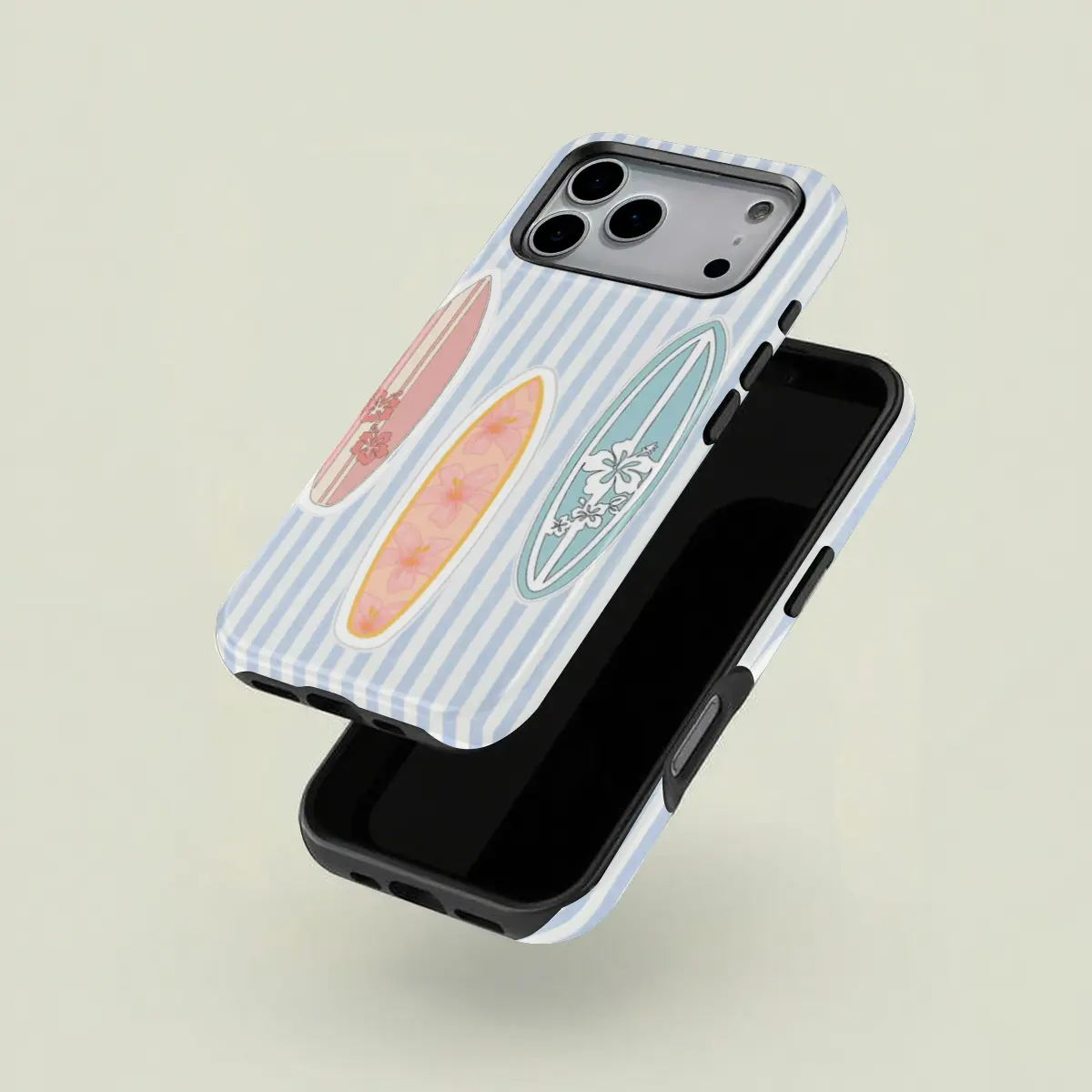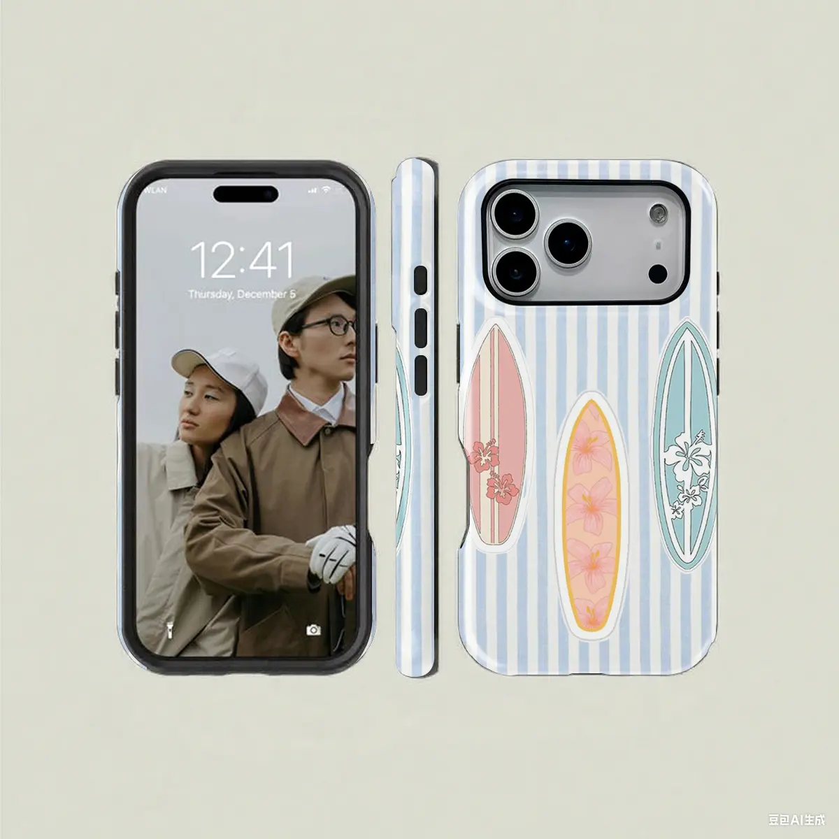 Beach Surfboard Hawaiian Style Double Layer Protective Case Solid 2-in-1 Protective Case for iPhone 17 16 15 Pro 14 13 12 11 Pro Max 14 15 1617Plus Samsung Galaxy S25 S24 S23 Ultra Series Protective Case Couple Phone Case Boyfriend