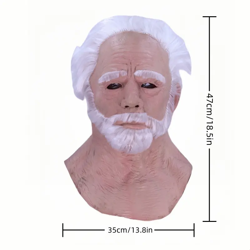 This luxurious full-face realistic grandpa latex mask will add a touch of color to your Halloween costume! With a 45 cm extendable neck for a perfect fit to the face, hand-painted 3D wrinkles and fluffy white hair/beard deliver unparalleled immersion, making it ideal for role-playing, haunted houses, escape rooms, and horror parties. One size fits most adults and is suitable for both men and women.