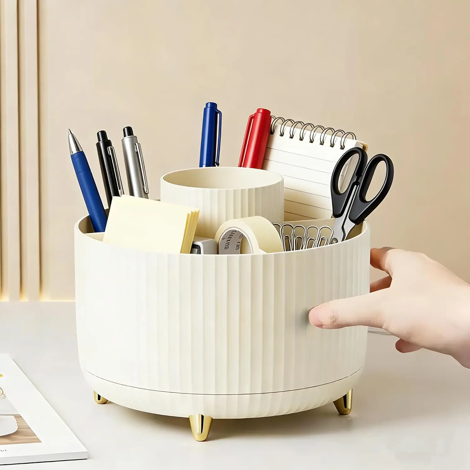 4.STRIPED DESIGN:Classic style gives this spinning organizer versatile look that blends in with any office or home decor. High-quality PP material makes it durable and long-lasting, While a warm cute color adds a touch of charm. The organizer can be appreciated at any age and at any stage of life.