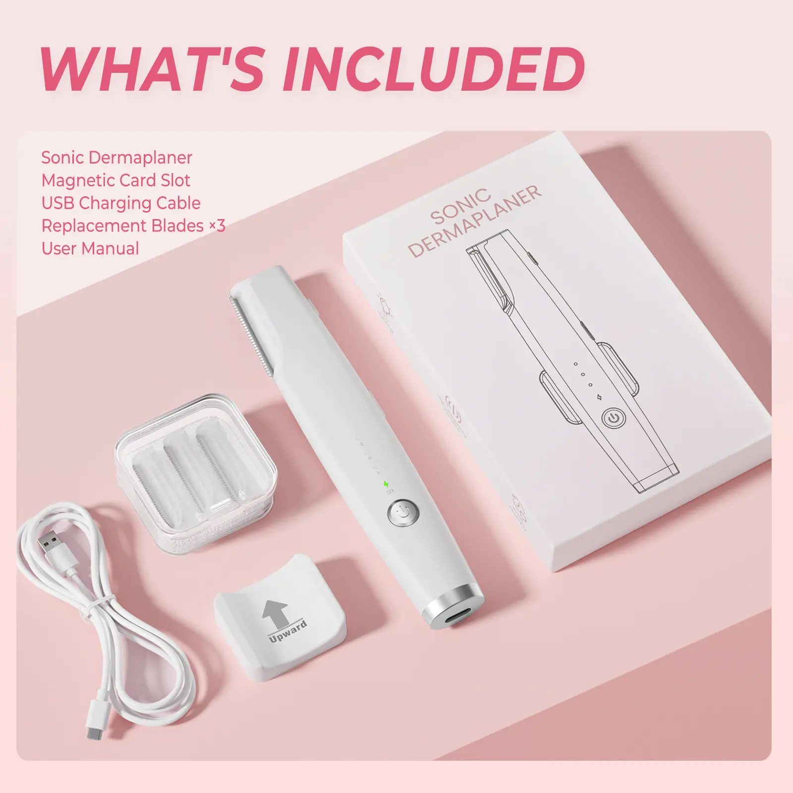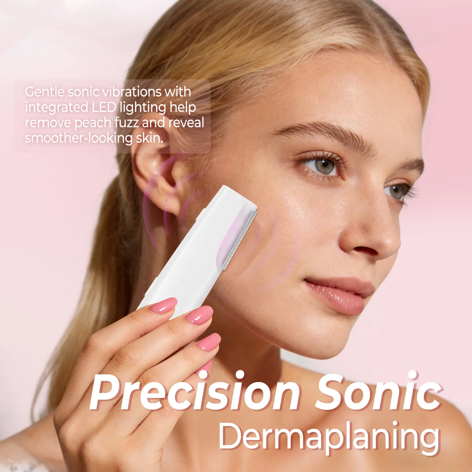 【Smooth Skin】This sonic dermaplaning tool helps lift away surface buildup and fine facial hair in a gentle, controlled way. With regular use, skin feels softer and looks more refined, creating a smoother canvas for daily skincare and makeup application.